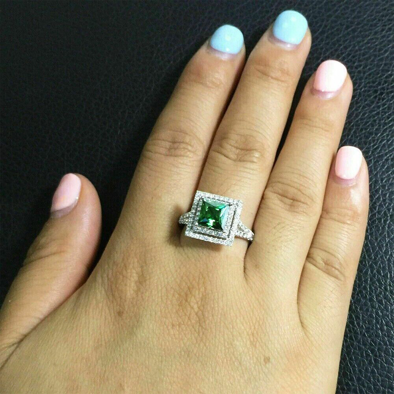 Hot selling new princess square ring European and American hot style inlaid zircon women's jewelry engagement proposal ring