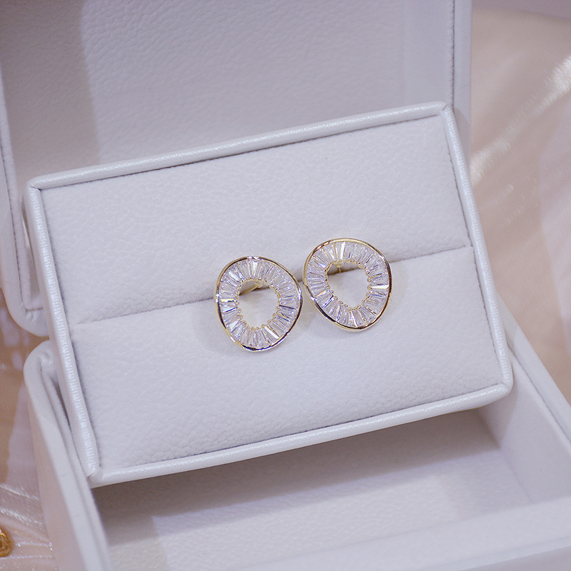 Light luxury irregular geometric round earrings simple personality fashion design zircon earrings for women