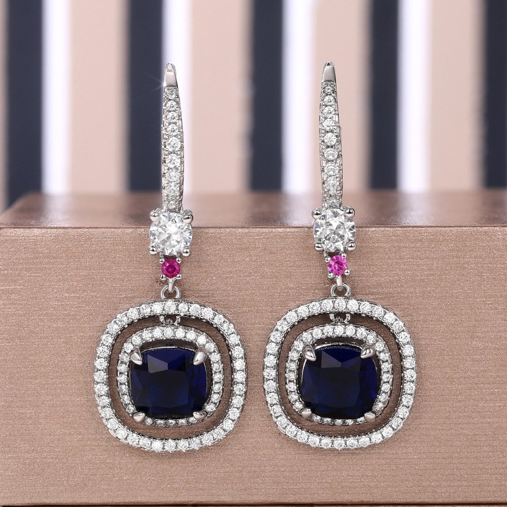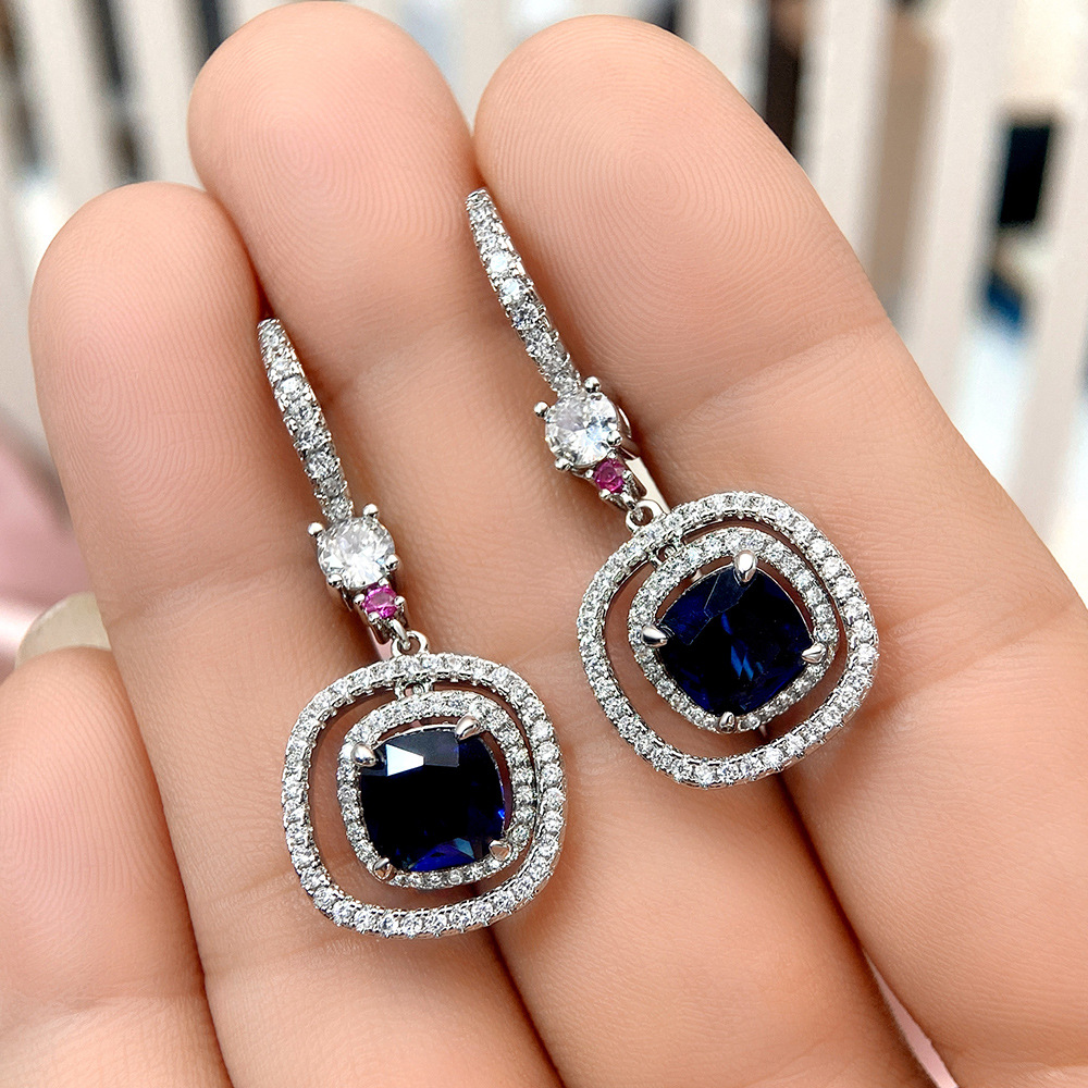 Light luxury lady style geometric earrings fashionable autumn and winter style royal blue zircon earrings round face slimming earrings