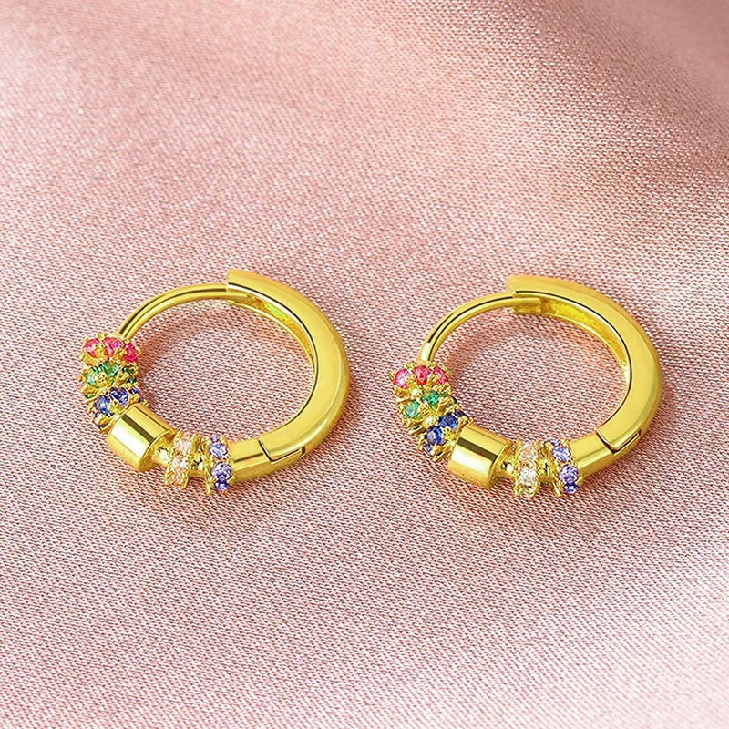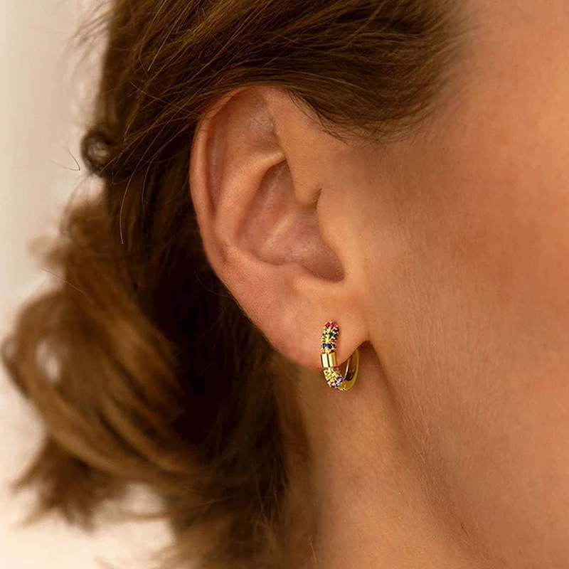 Simple and fashionable colorful zircon heart earrings European and American style exquisite small earrings light luxury temperament earrings female era242