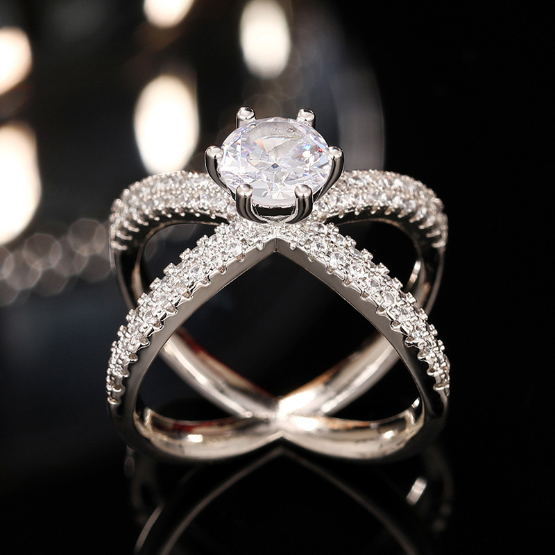 New zircon ring hollow cross four claws fashion design proposal wedding ring birthday gift ring