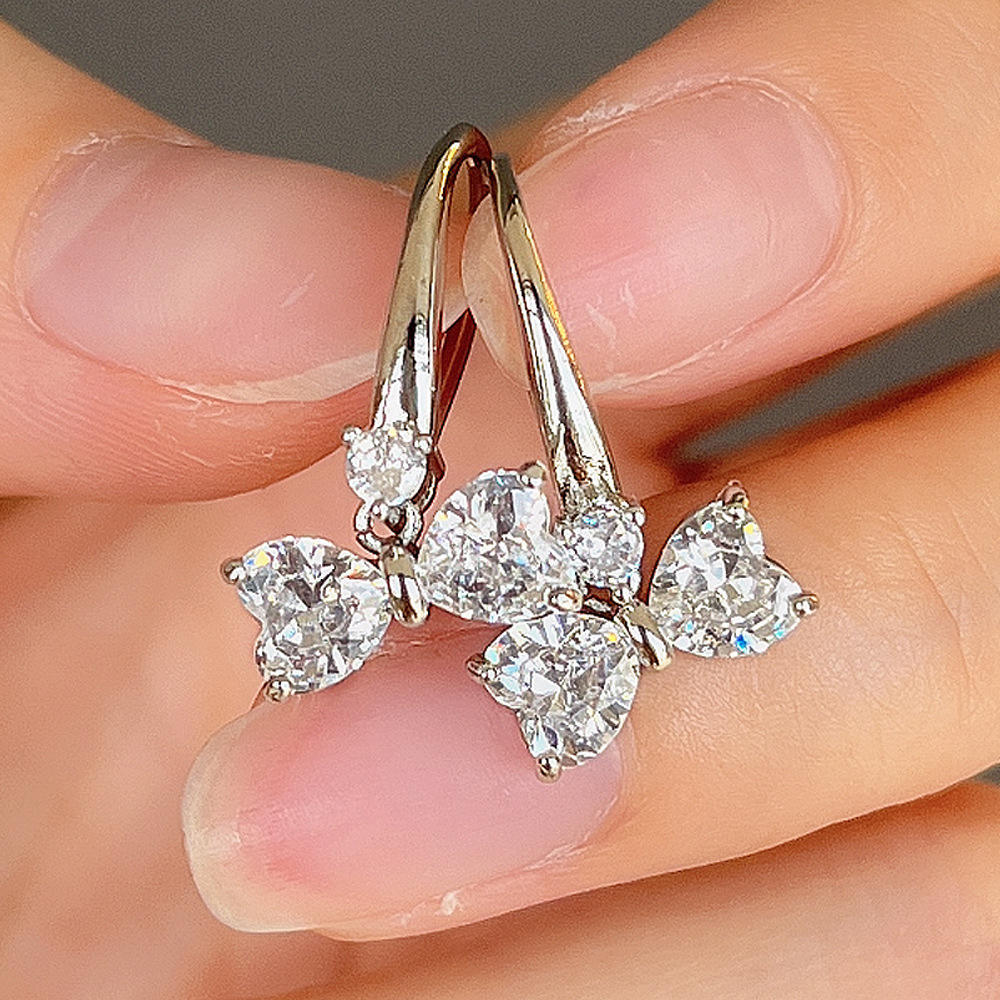 Light luxury retro high-end bow zircon earrings for women new style trendy temperament ear clip earrings wholesale