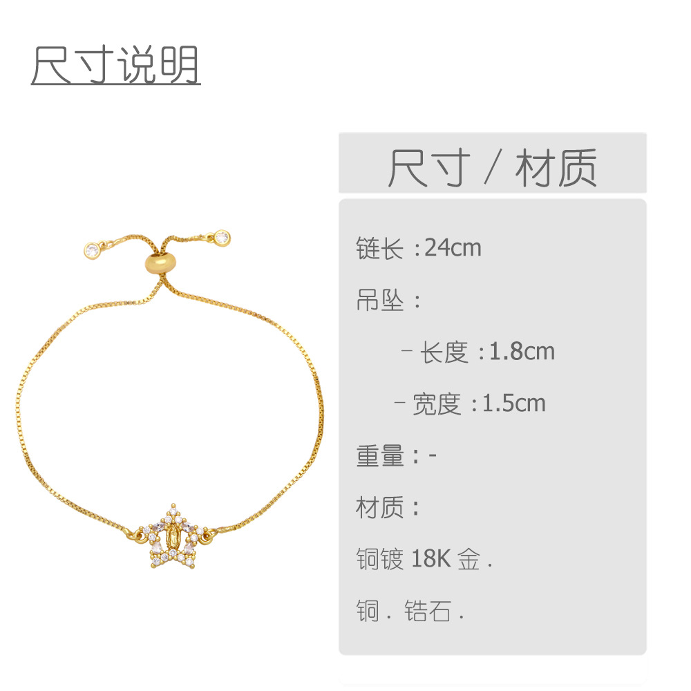 AS jewelry full zirconium 26 English letters bracelet copper plated real gold adjustment jewelry brm62