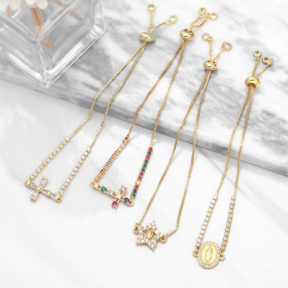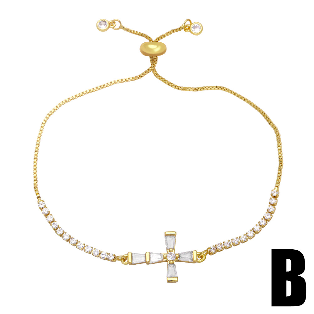 Light luxury style colored zircon cross bracelet female European and American trend with gold-plated hand jewelry fashion gift brf36