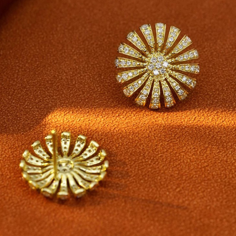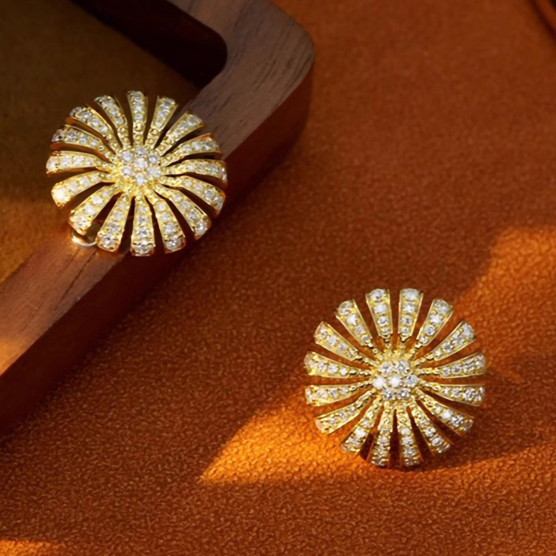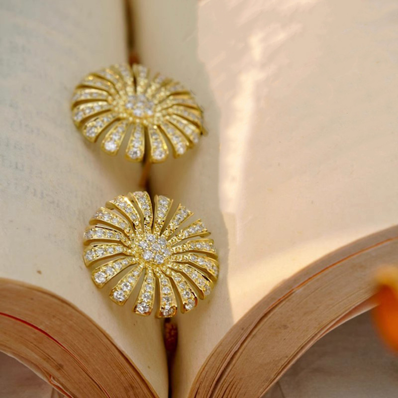 Light luxury style micro-inlaid zircon earrings exquisite sunflower popular earrings fashionable temperament high-end earrings