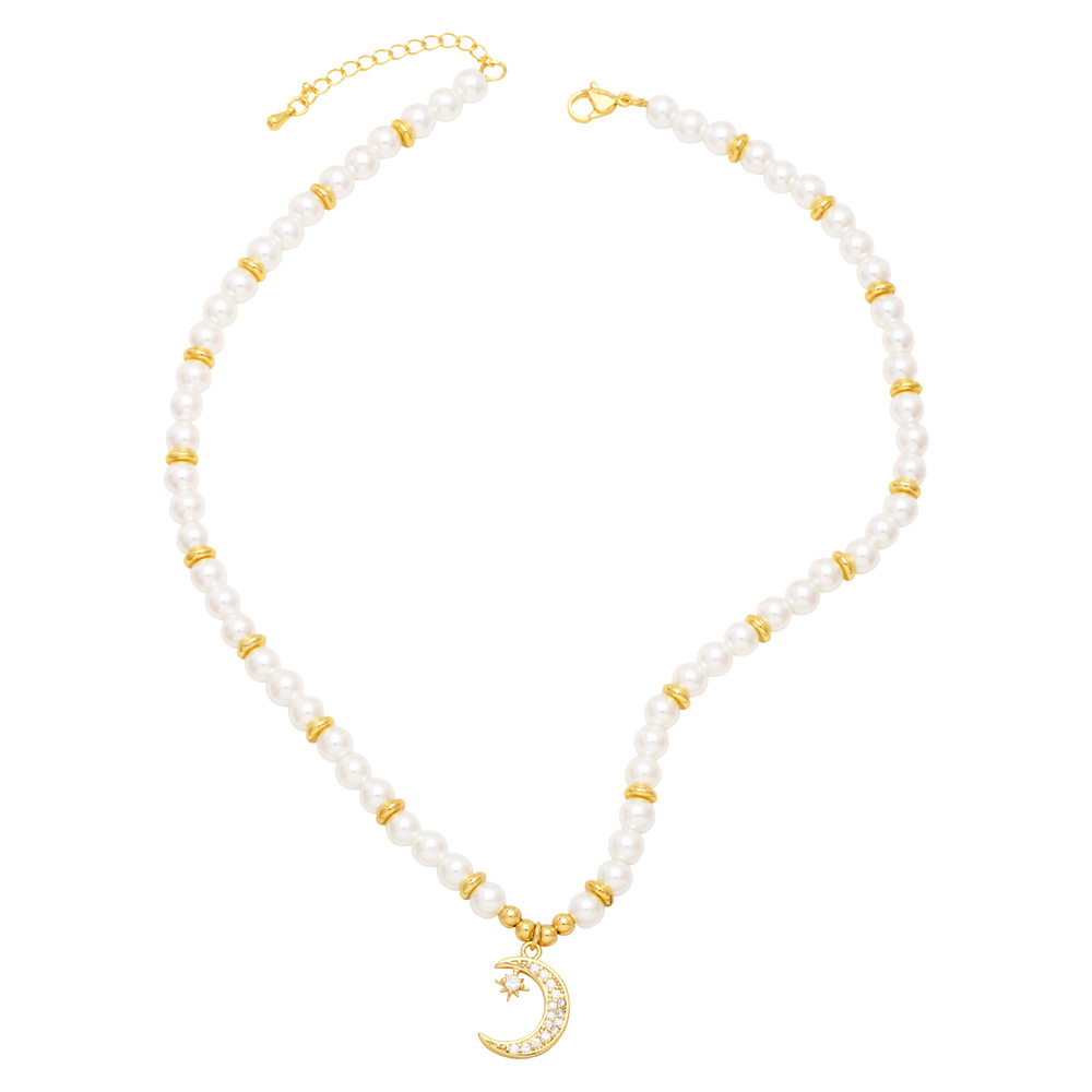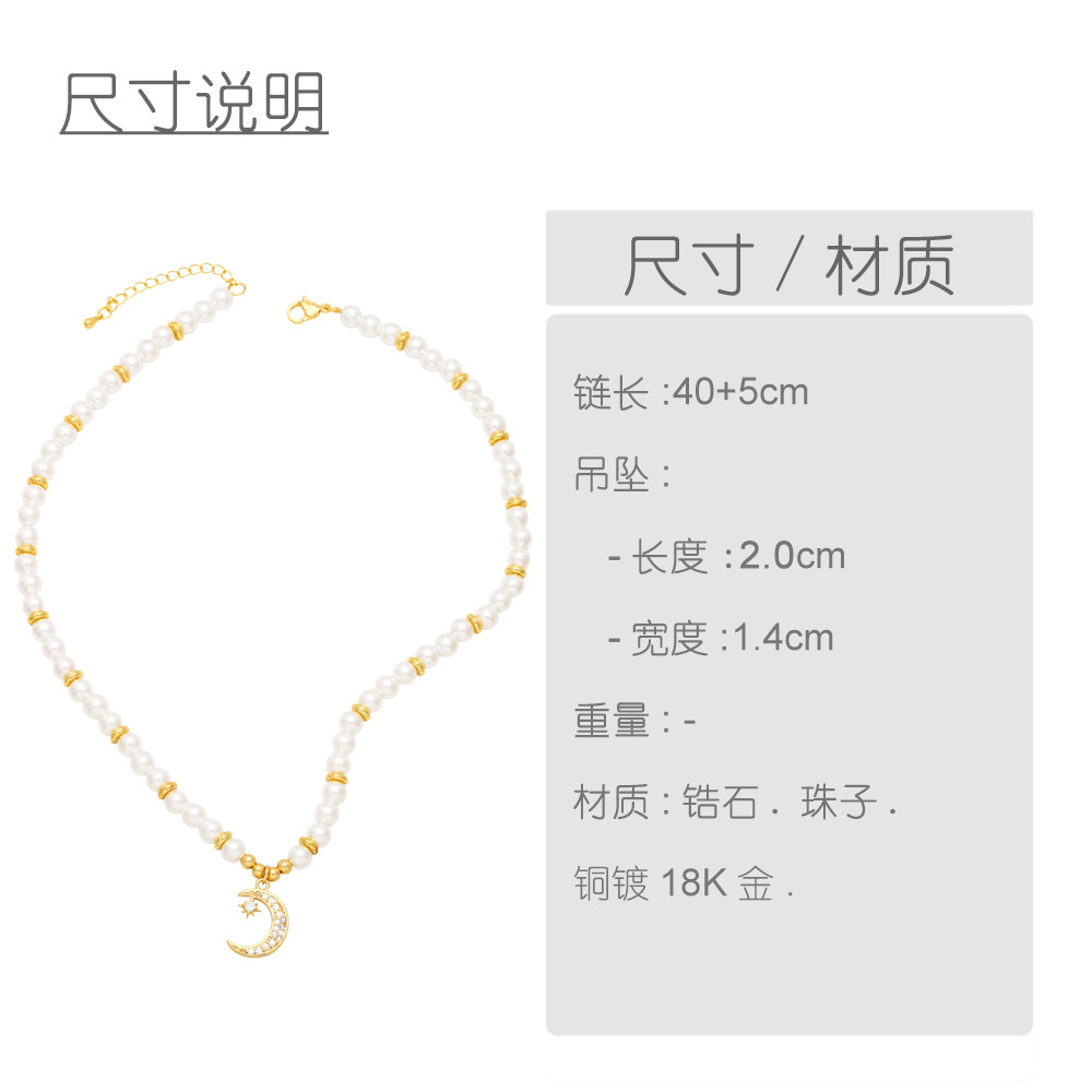 Light luxury style pearl necklace female net celebrity versatile necklace niche design star moon pendant nkb457