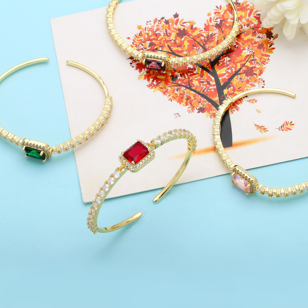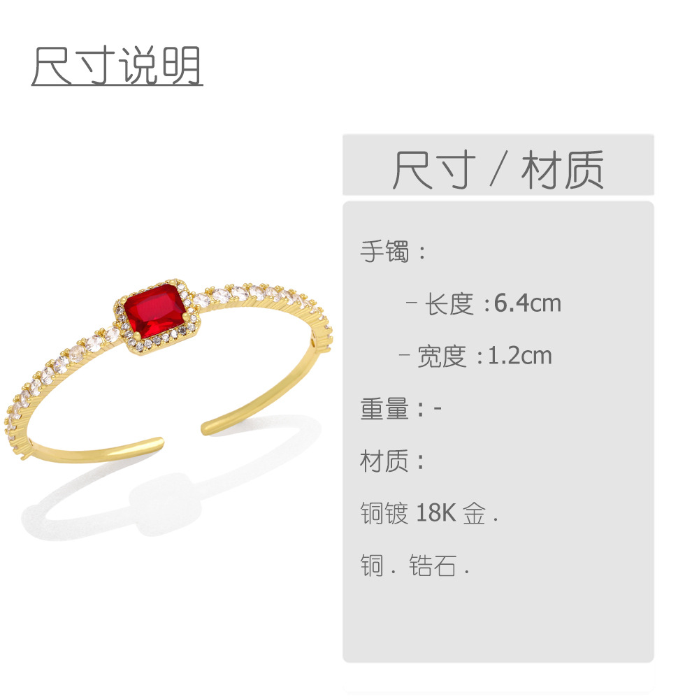 Light luxury super flash zircon bracelet niche design square diamond cold style exquisite open bracelet female trend brj69