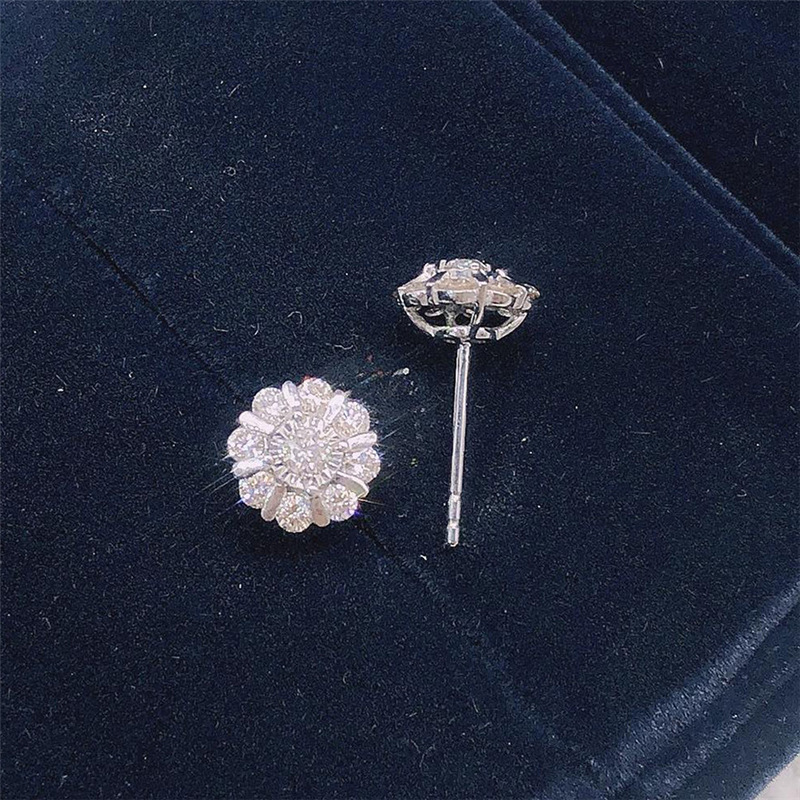 Live broadcast earrings French micro-inlaid zircon flower earrings for women small fresh floral earrings