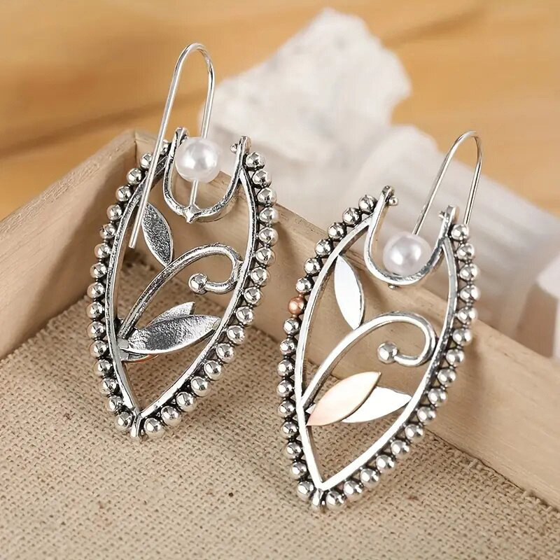 Live broadcast forest retro literary earrings exquisite leaves multi-color jewelry imitation pearl flower leaf earrings