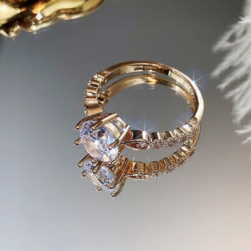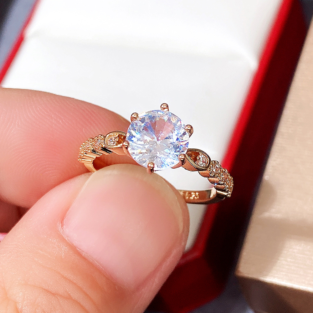 Micro-inlaid celebrity style classic all-match popular ring six-claw zircon wedding ring European and American style light luxury ring