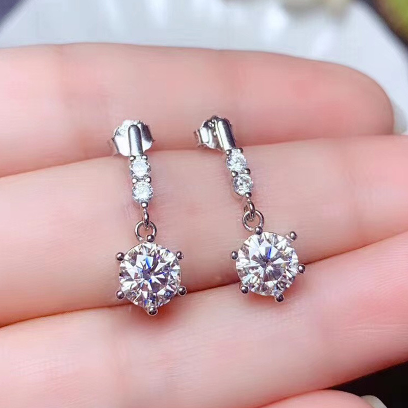Live broadcast hot-selling fashion OL imitation moissanite zircon earrings exquisite copper-plated white gold earrings