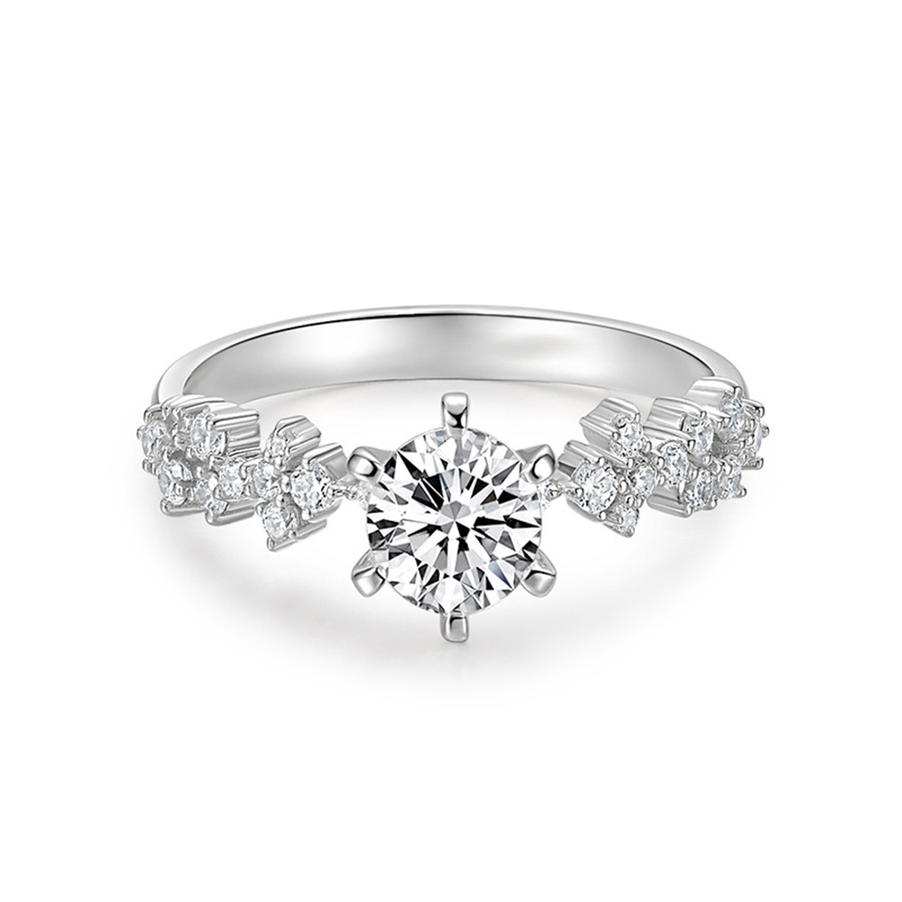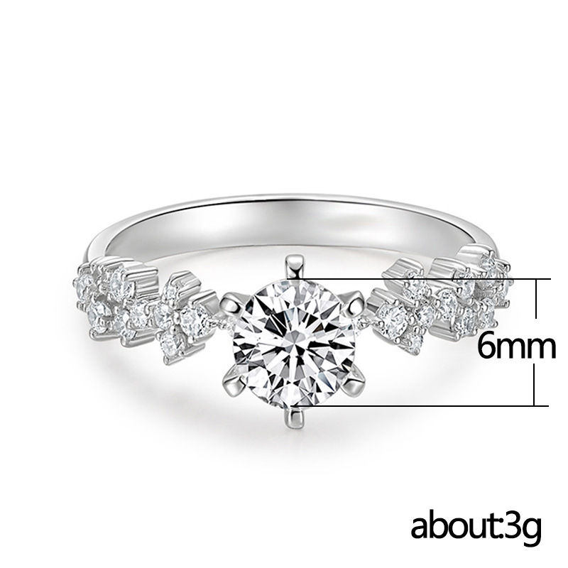 Micro-inlaid celebrity style classic all-match popular ring six-claw zircon wedding ring European and American style light luxury ring