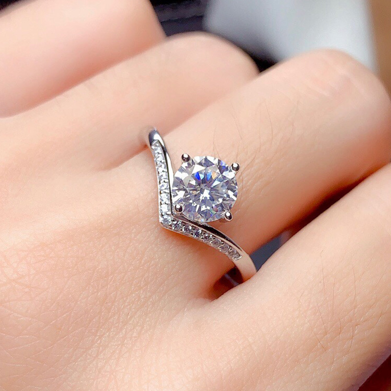 Live broadcast hot-selling jewelry Eight Hearts and Eight Arrows zircon V-shaped ring fashionable OL female crown ring accessories