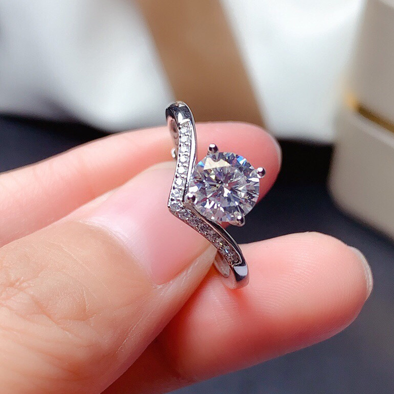 Micro-inlaid celebrity style classic all-match popular ring six-claw zircon wedding ring European and American style light luxury ring