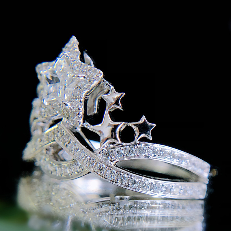 Live broadcast of new accessories luxury simulated zircon five-pointed star ring super flash crown women's ring
