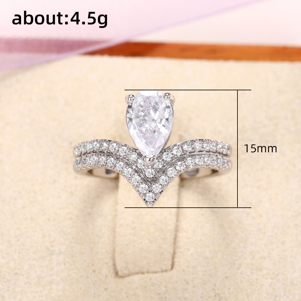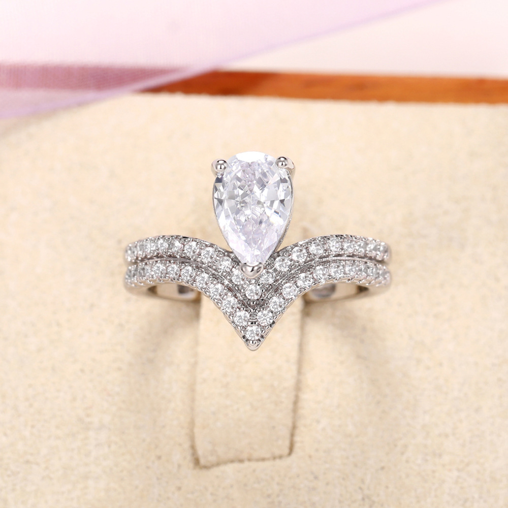 Live broadcast of new hand jewelry creative pear-shaped teardrop-shaped group inlaid zircon ring crown women's ring