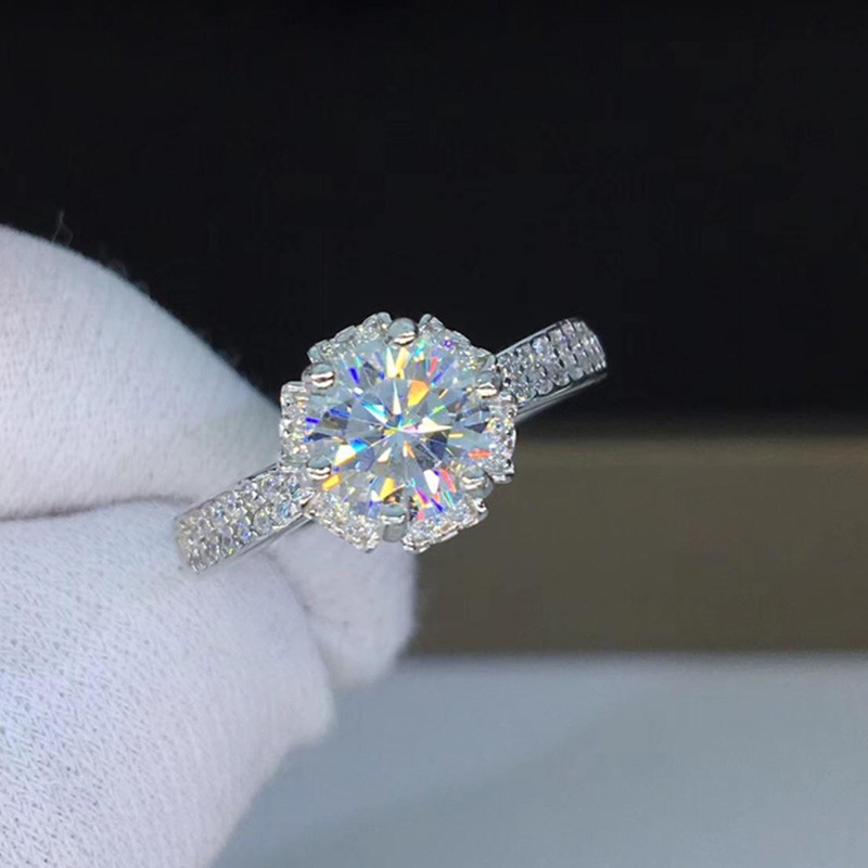 Live broadcast of the new carat full diamond cat claw zircon women's ring romantic wedding anniversary gift