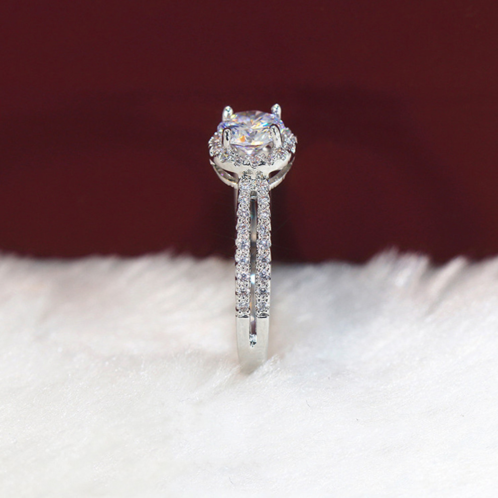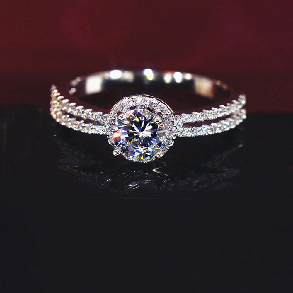 Micro-inlaid celebrity style classic all-match popular ring six-claw zircon wedding ring European and American style light luxury ring