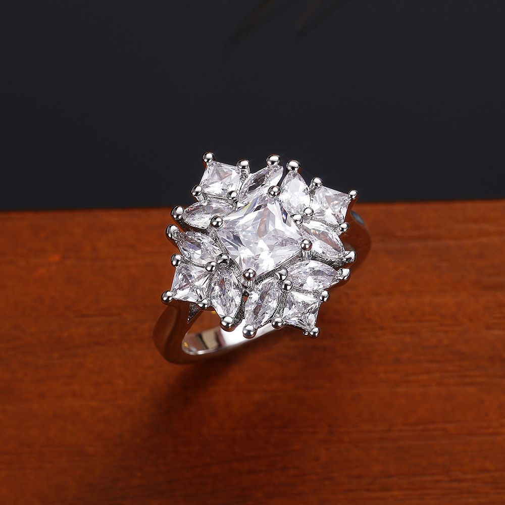 Live broadcast style cool style Internet celebrity flower ring female European and American full diamond banquet engagement ring