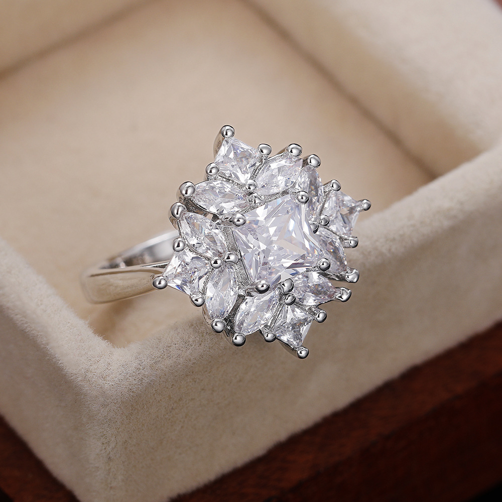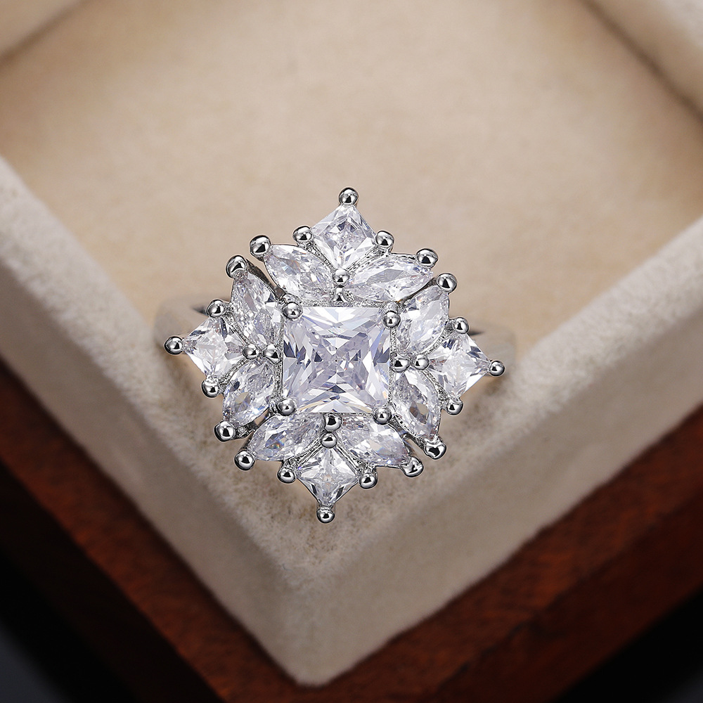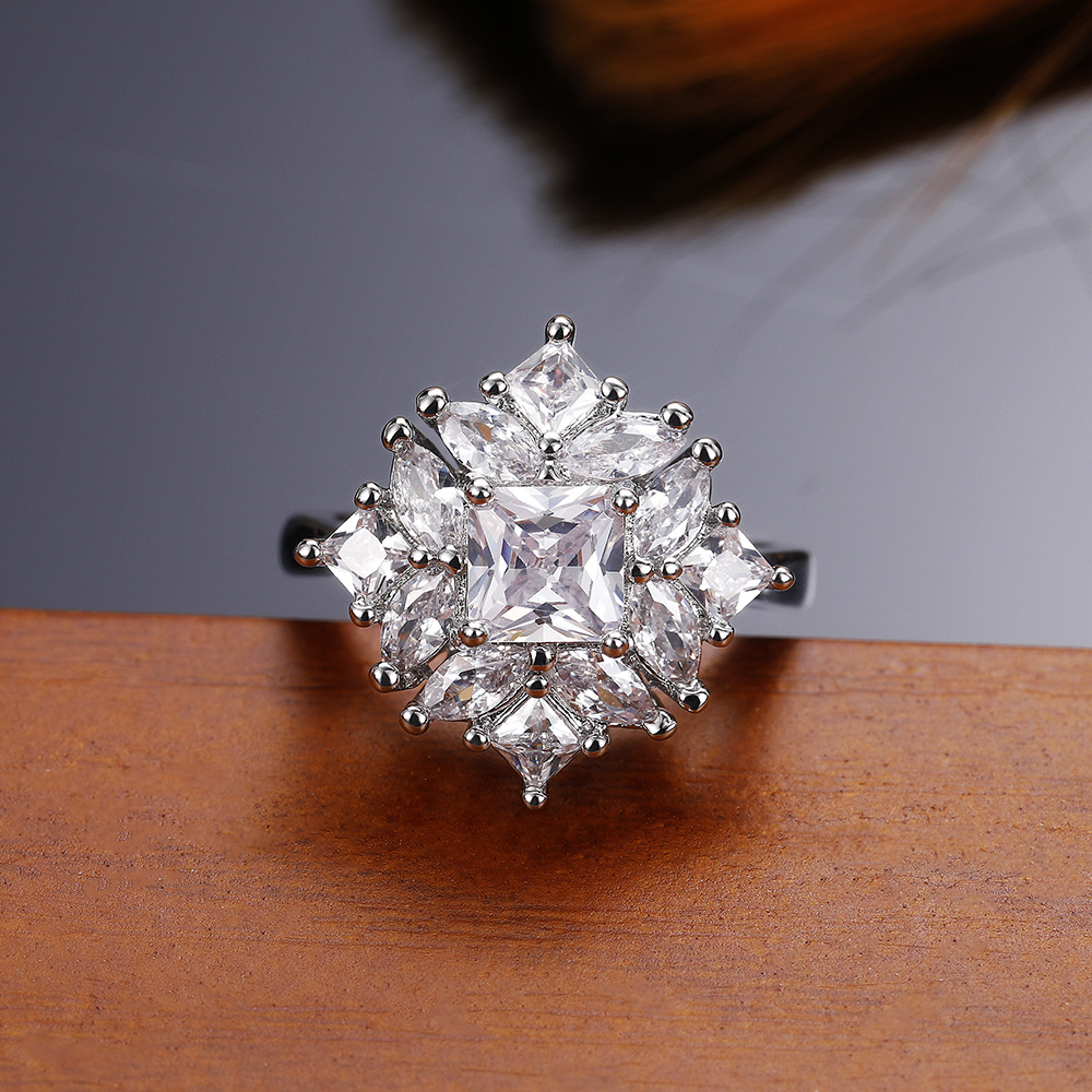 Hot selling new princess square ring European and American hot style inlaid zircon women's jewelry engagement proposal ring