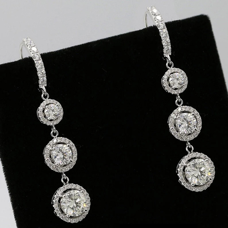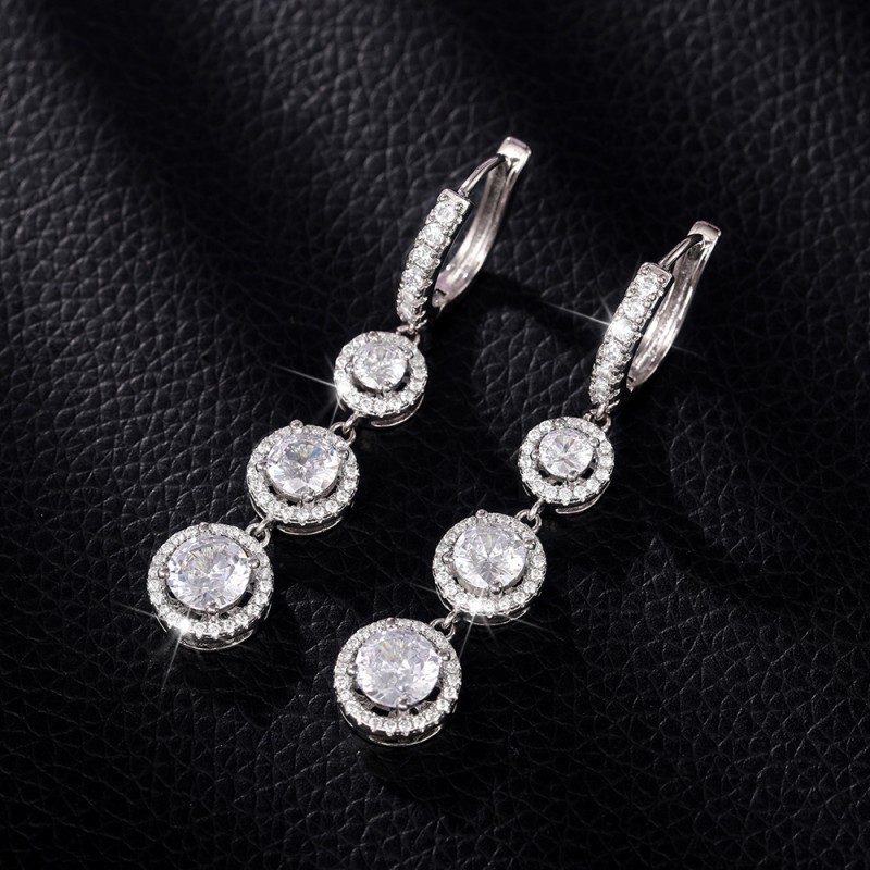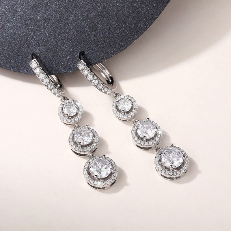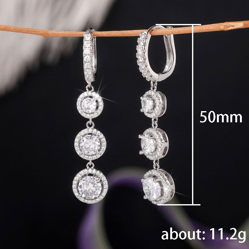 Live broadcast style tassel long round zircon earrings for women all-match temperament personality earrings wholesale