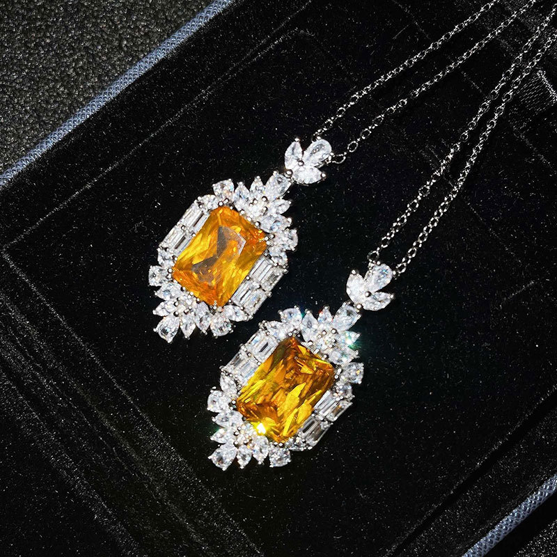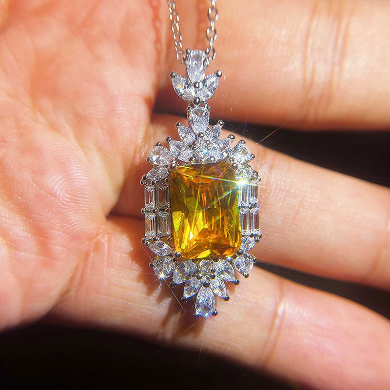 Live broadcast super flash pendant luxury fine copper inlaid yellow diamond crystal necklace anniversary celebration necklace pendant