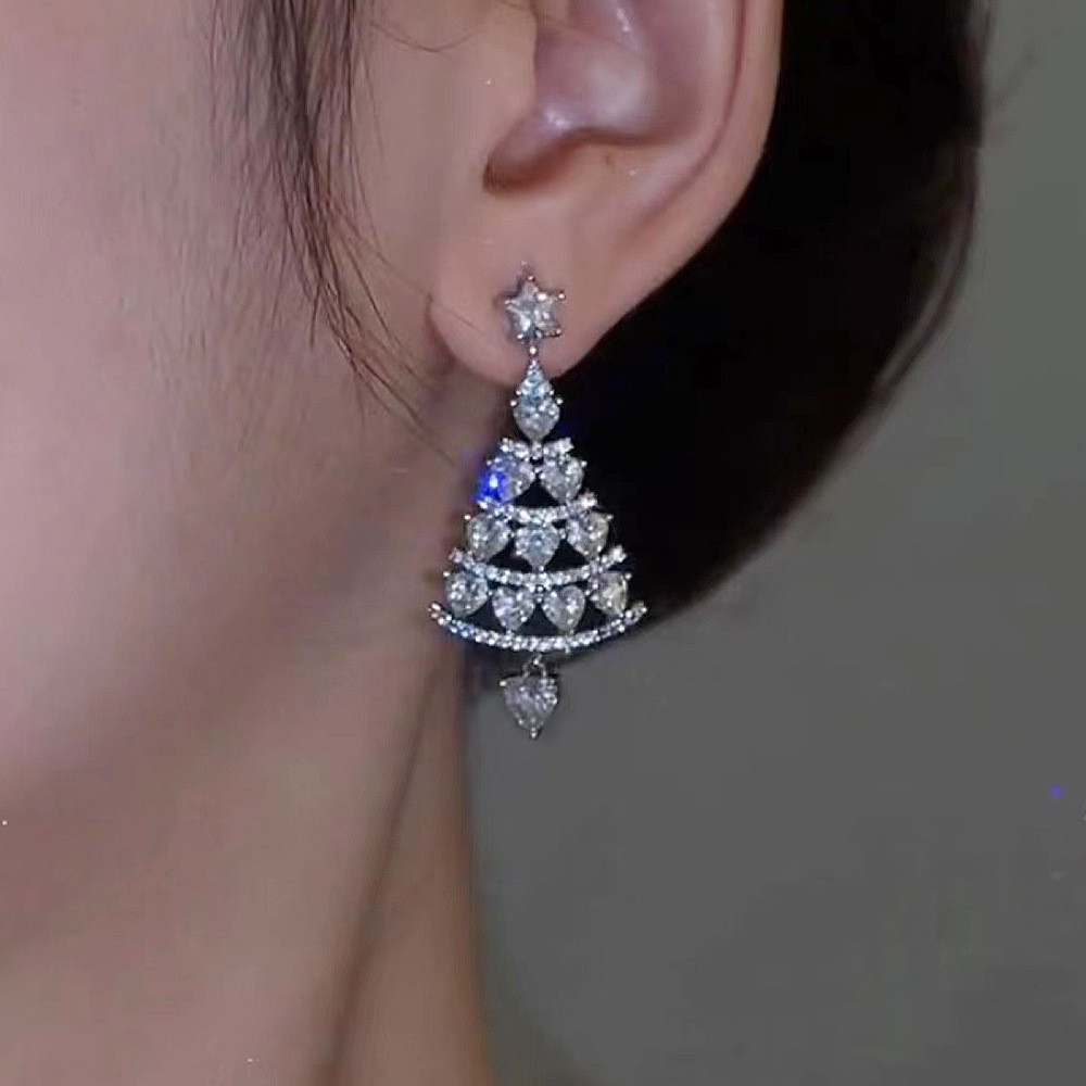 Live broadcast the same style earrings micro-inlaid zircon Christmas tree earrings for women exquisite versatile pastoral style earrings