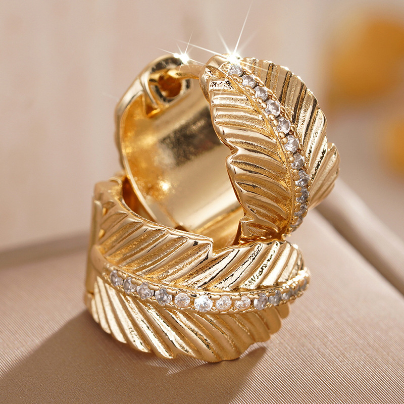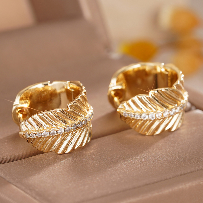 Live hot sale earrings for women with leaf-shaped micro-inlaid zircon imitation gold accessories, French elegant ladies' jewelry