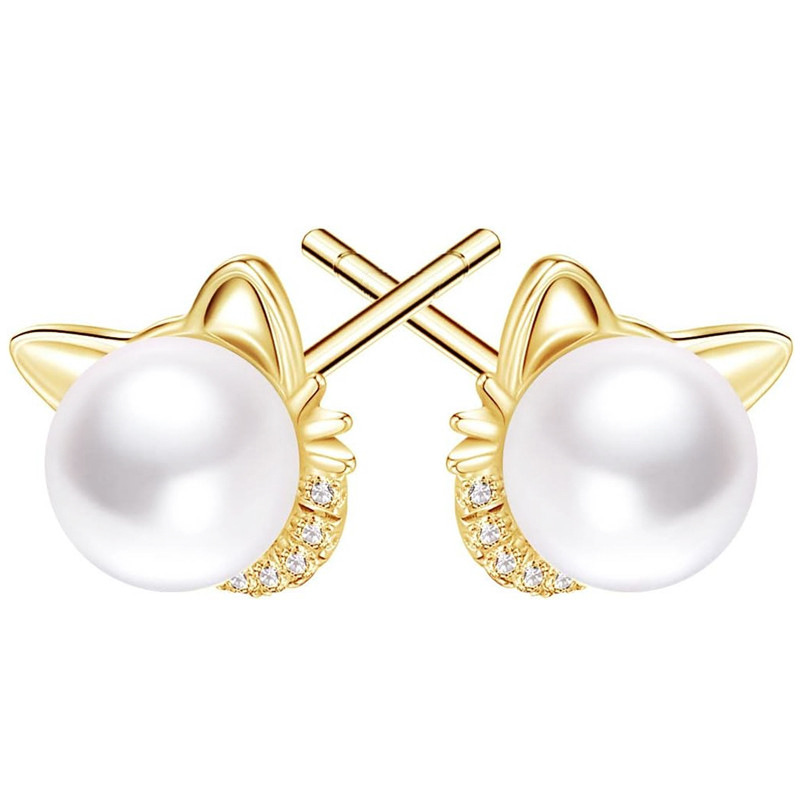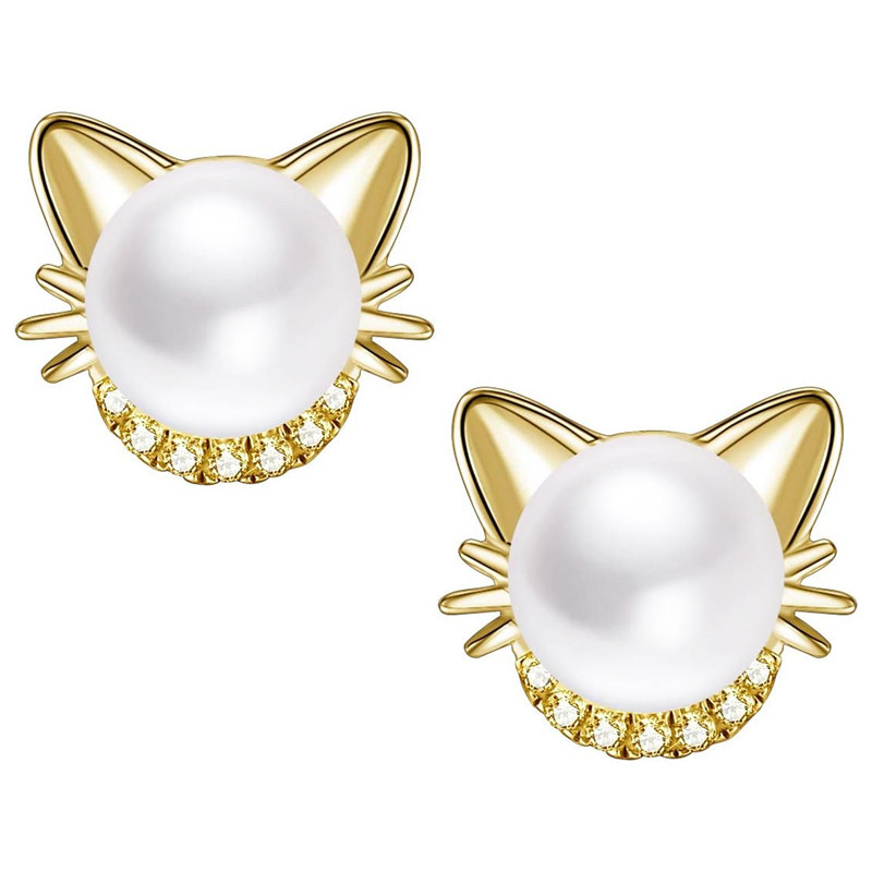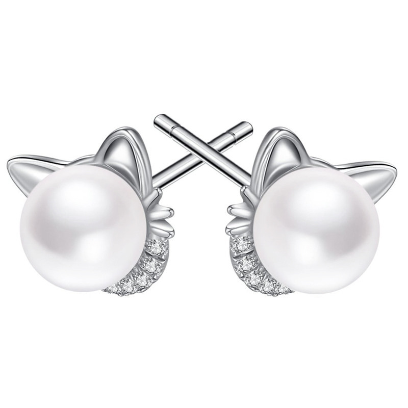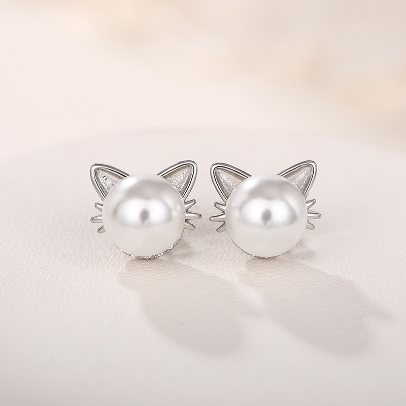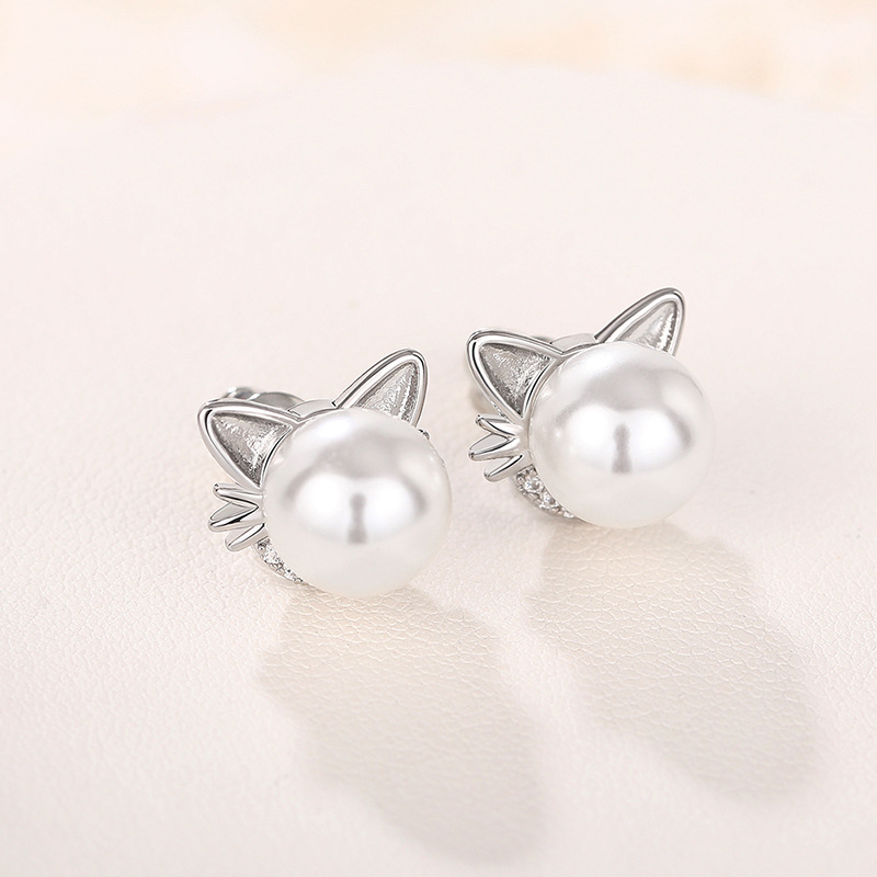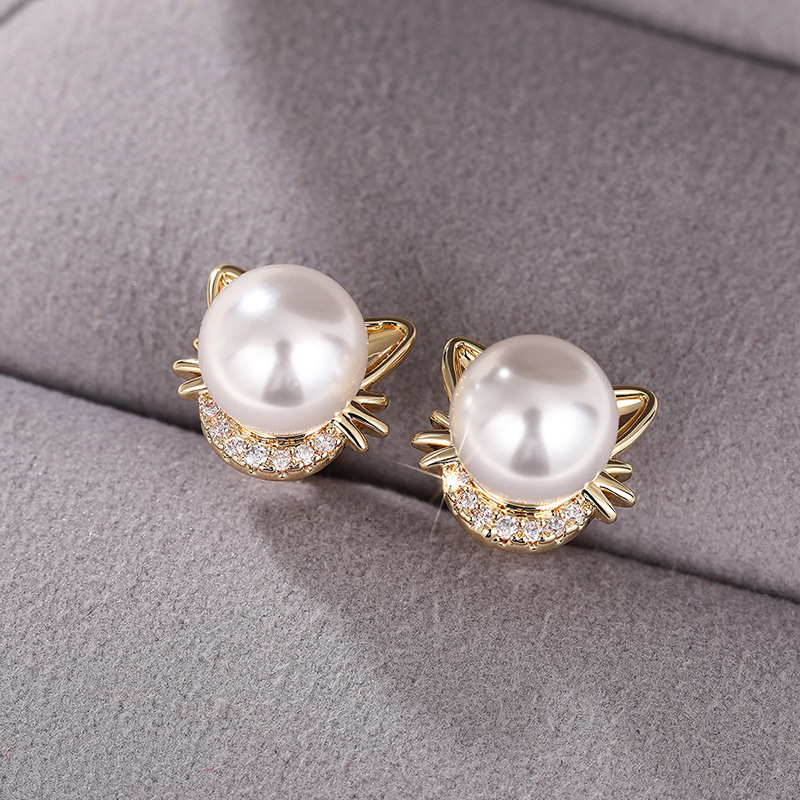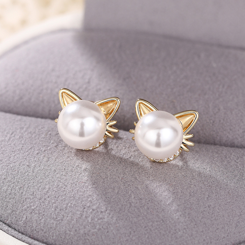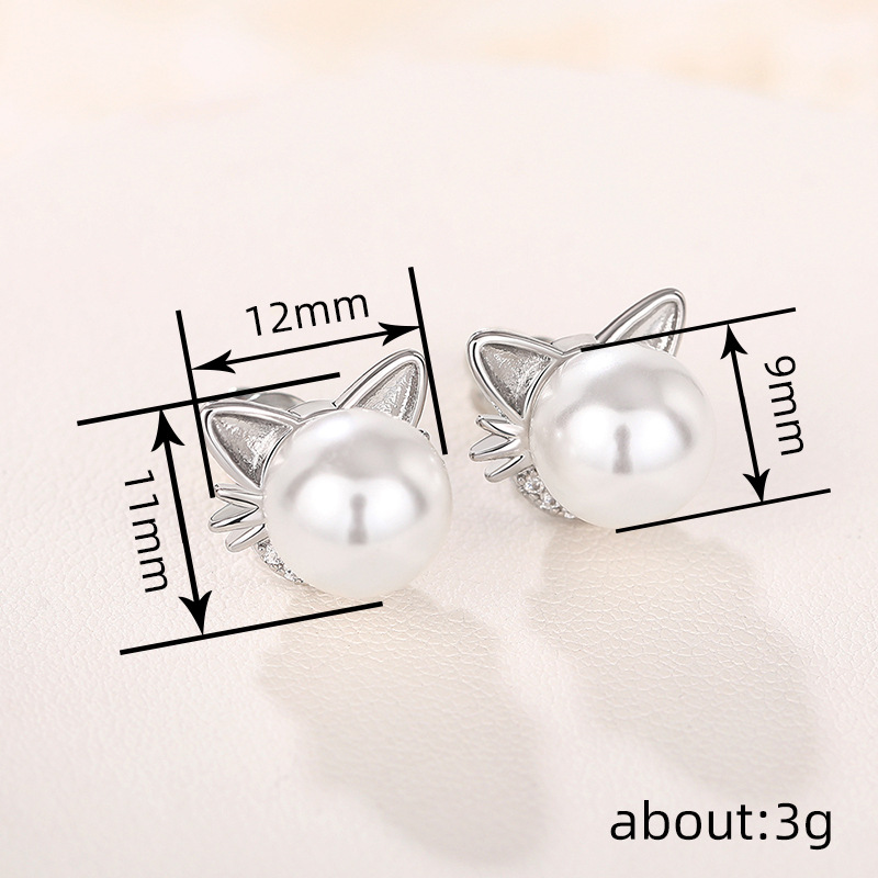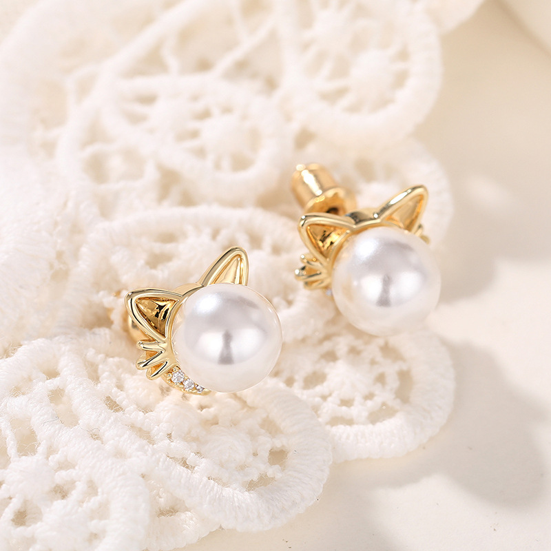 Live hot selling cat ear earrings imitation pearls cute ladies jewelry girls daily exquisite accessories