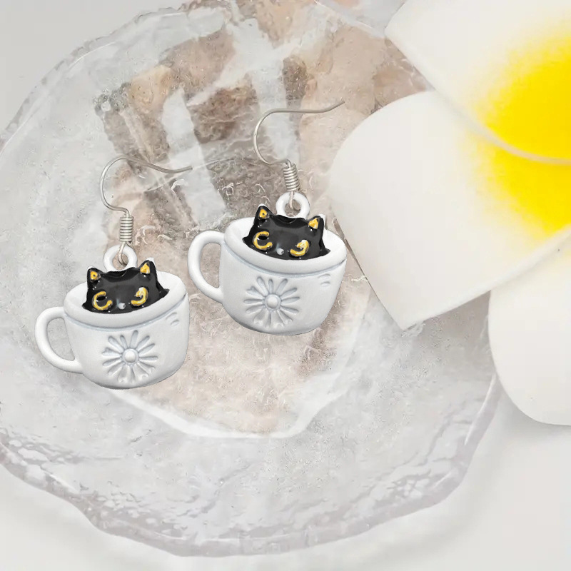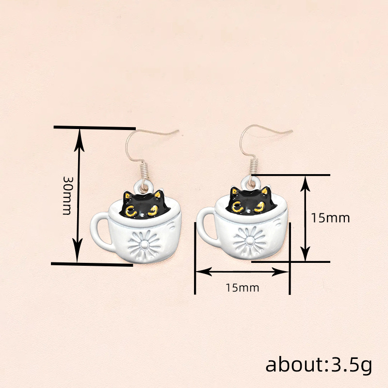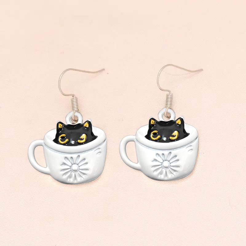 Live hot selling cute earrings for women cat coffee cute earrings sweet outfit essential accessories