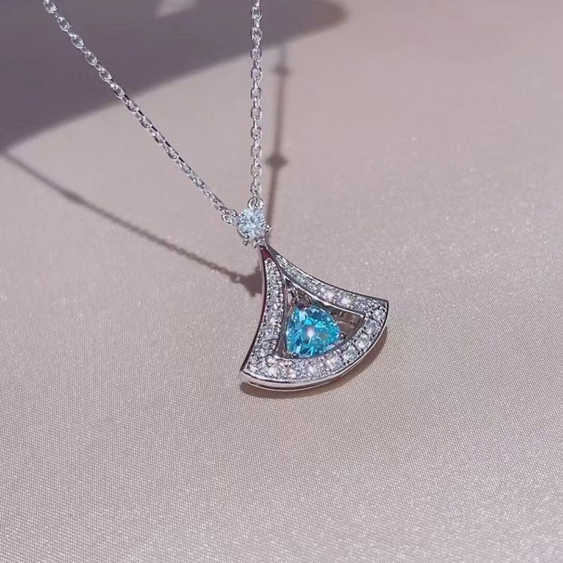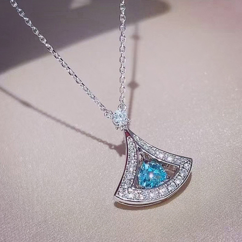 Live hot selling money accessories creative fan-shaped sea blue zircon necklace fashionable small skirt clavicle chain