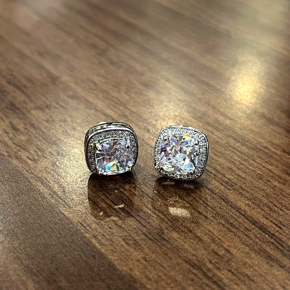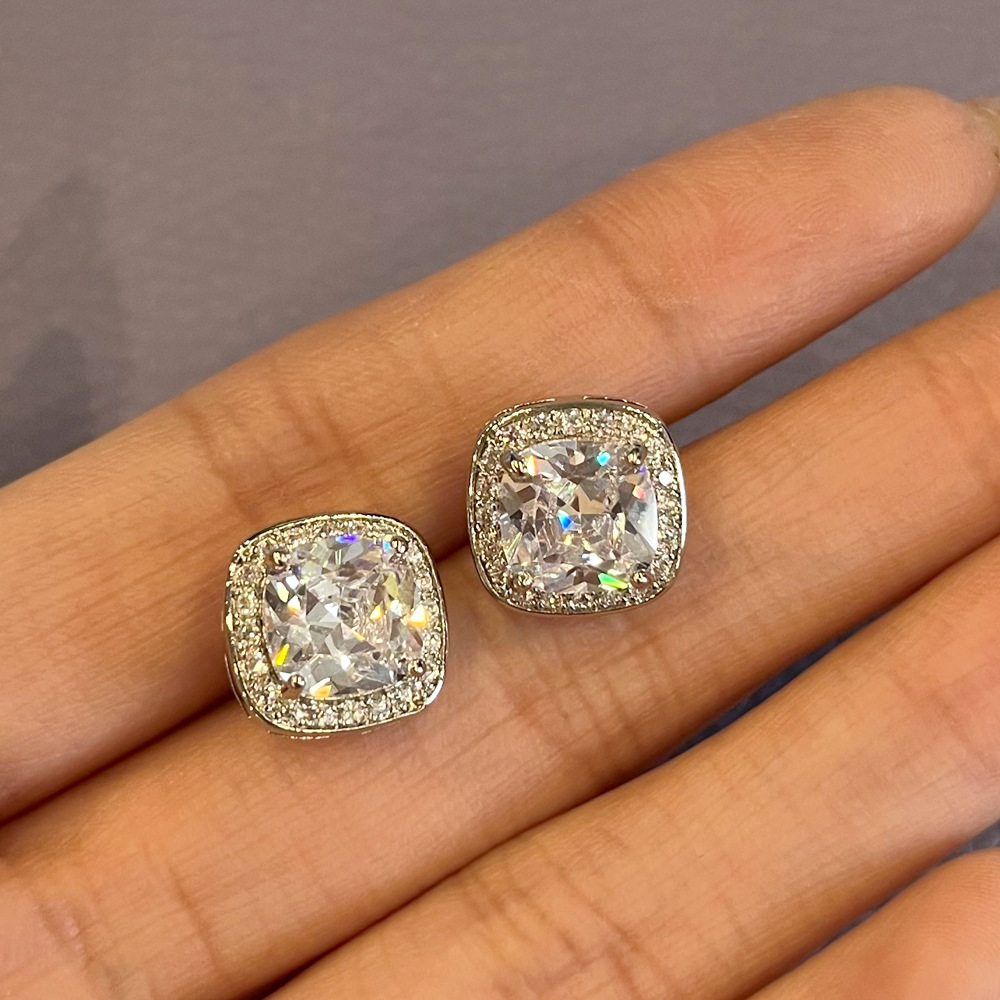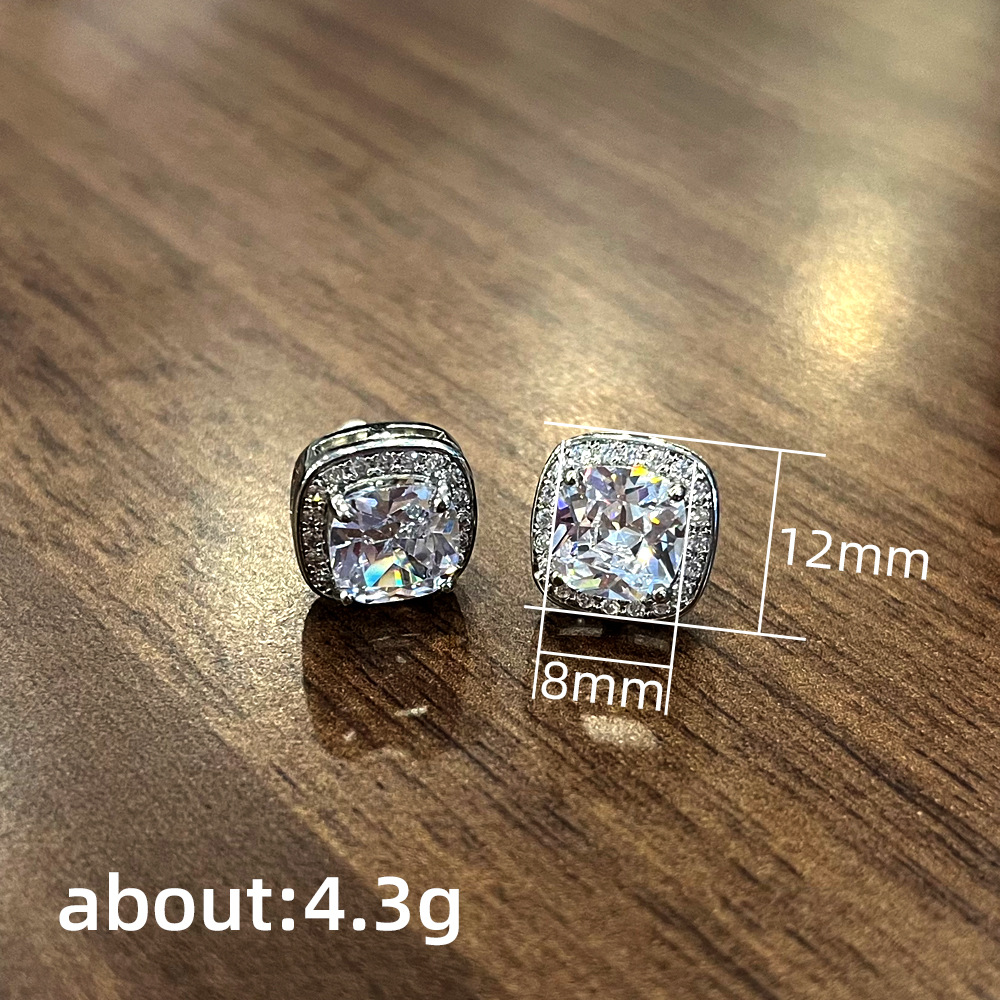 Live new arrival full diamond square earrings fashionable super flash simulation diamond zircon earrings exquisite platinum earrings