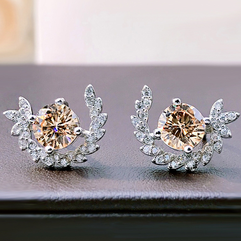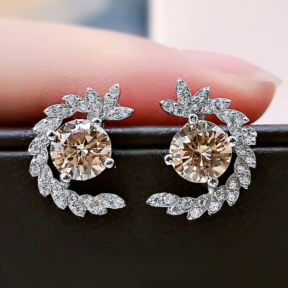 Live new earrings copper inlaid zircon wheat ear earrings Internet celebrity same style temperament earrings for women