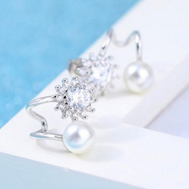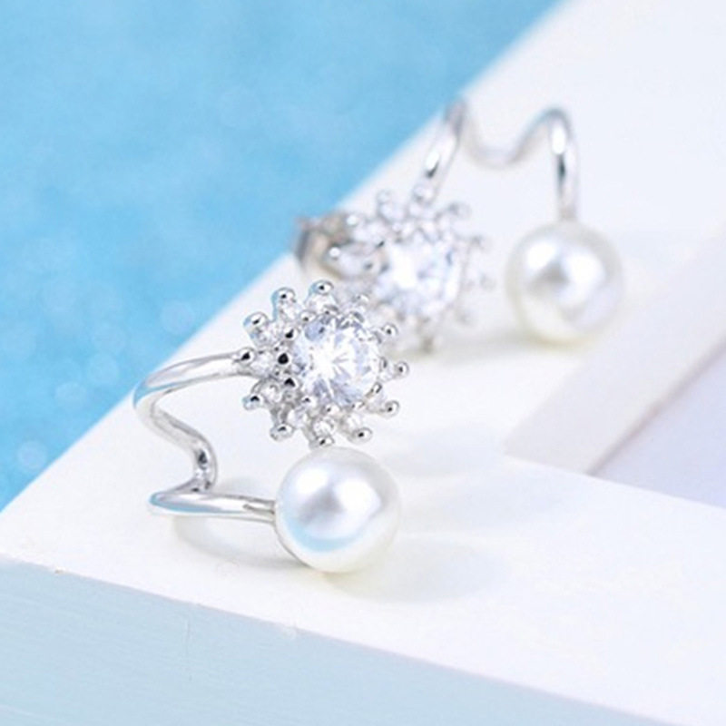 Live new earrings exquisite sunflower imitation pearl ear clips female star same style zircon earrings