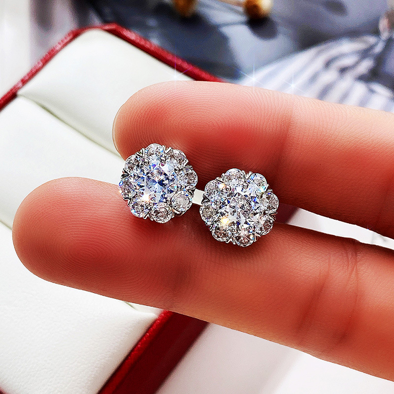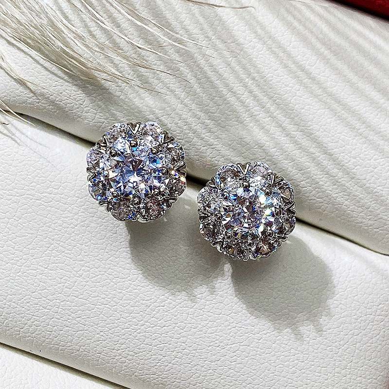 Live new product recommendation: exquisite full diamond flower zircon earrings, creative student earrings for women