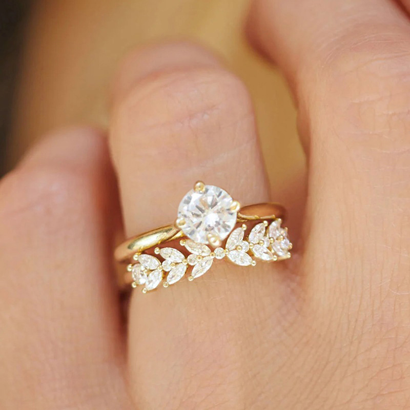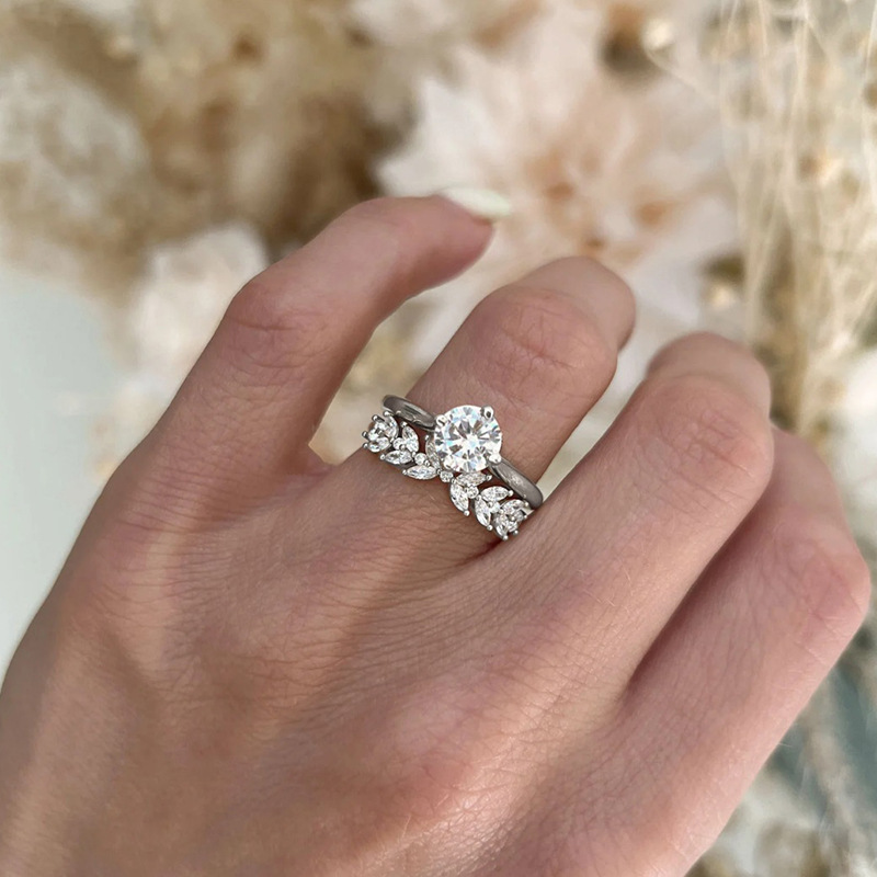 New best-selling super flash ring tree branch bud four-claw inlaid ring light luxury wedding ring for girlfriend