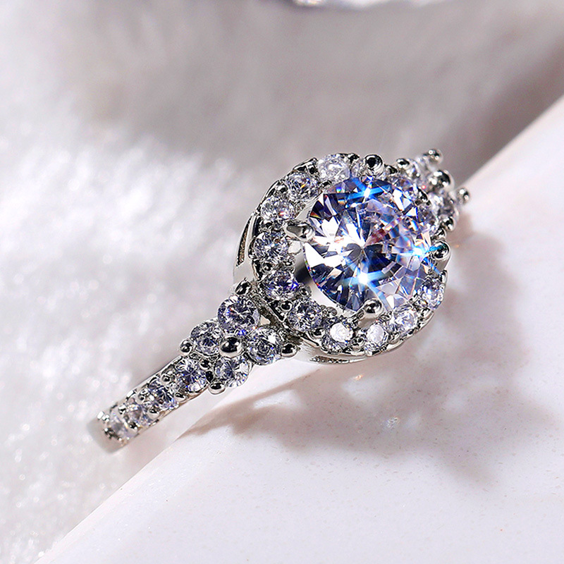 Micro-inlaid celebrity style classic all-match popular ring six-claw zircon wedding ring European and American style light luxury ring
