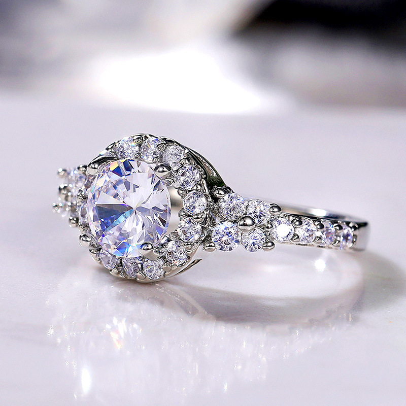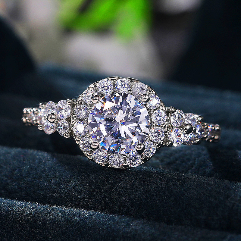 Live source group inlaid with fashionable round zircon ring European and American women's engagement ring