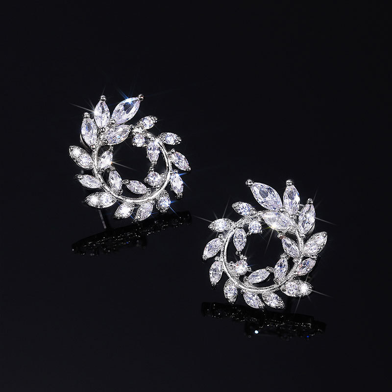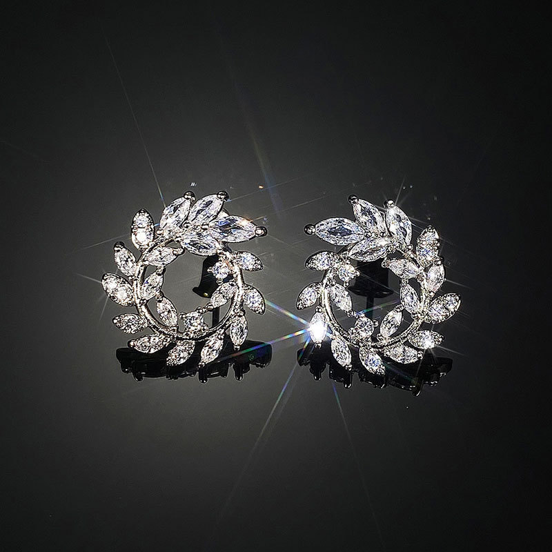Live streaming celebrity hot-selling earrings, luxurious full diamond micro-inlaid leaf olive branch earrings, factory wholesale
