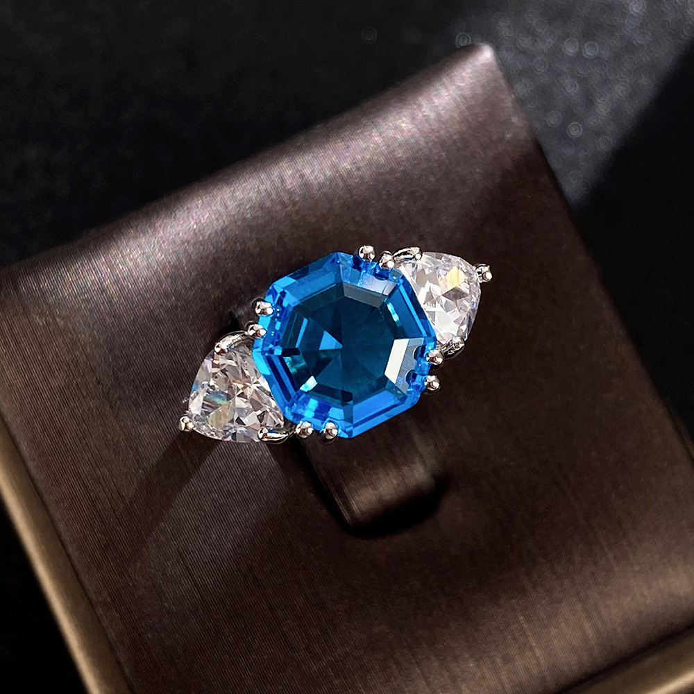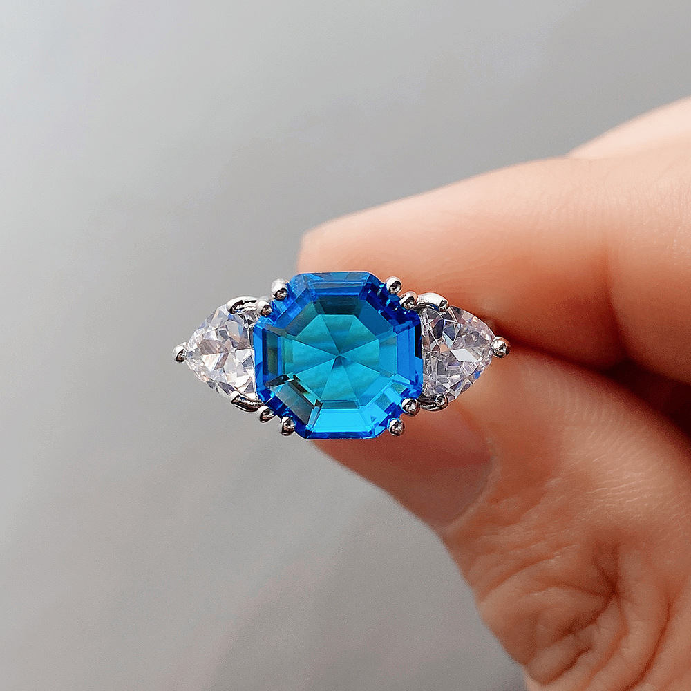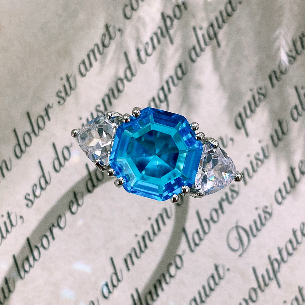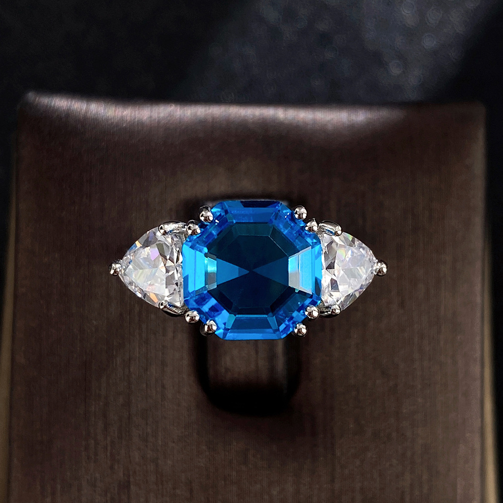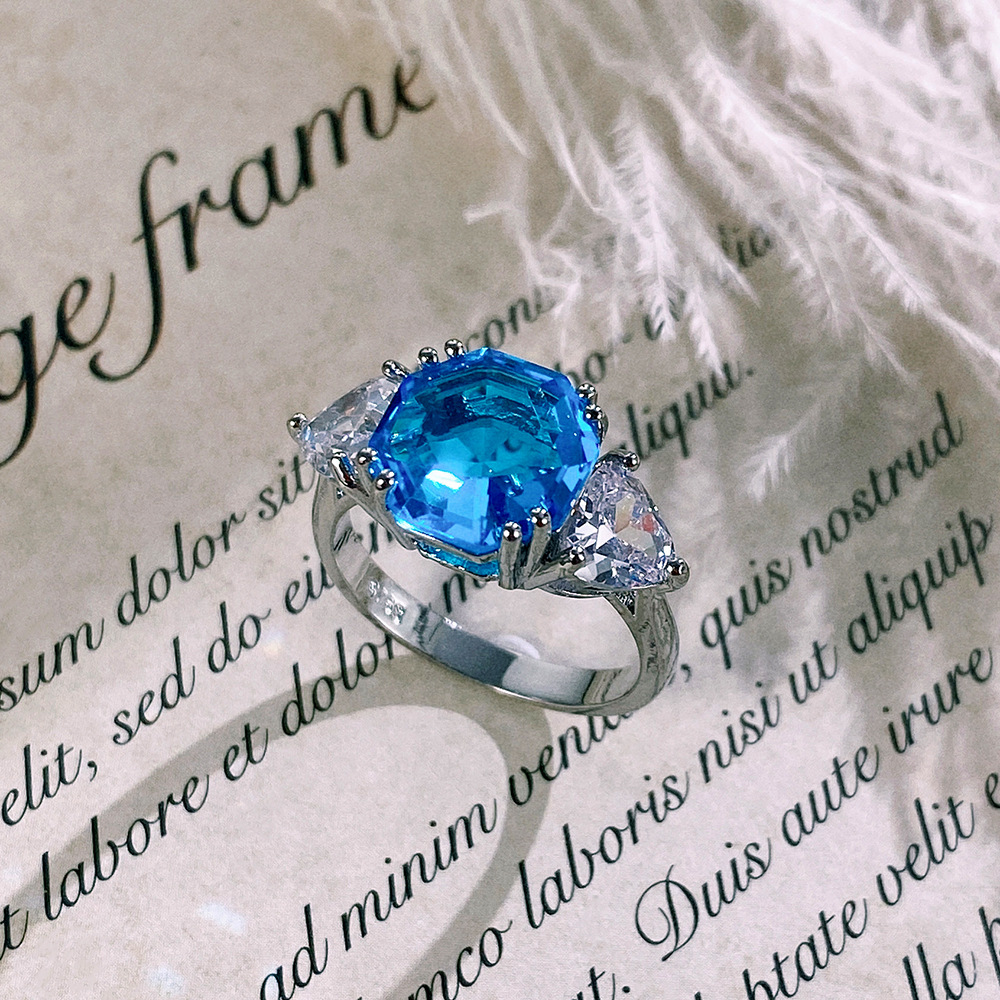 Live streaming jewelry wholesale fashion Asscher diamond colored gemstone ring female European and American light luxury women's ring