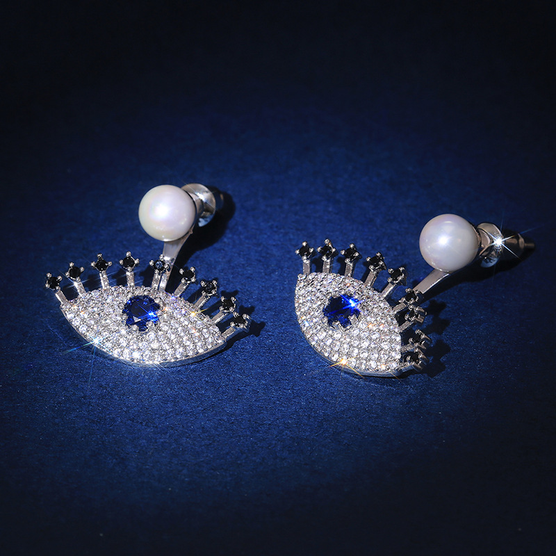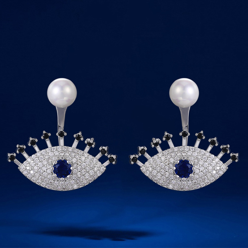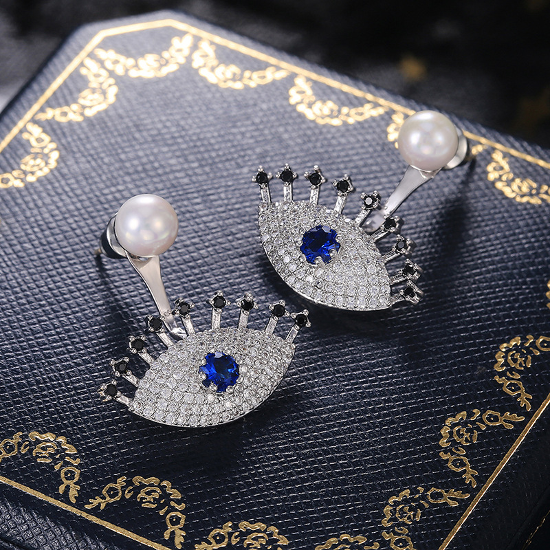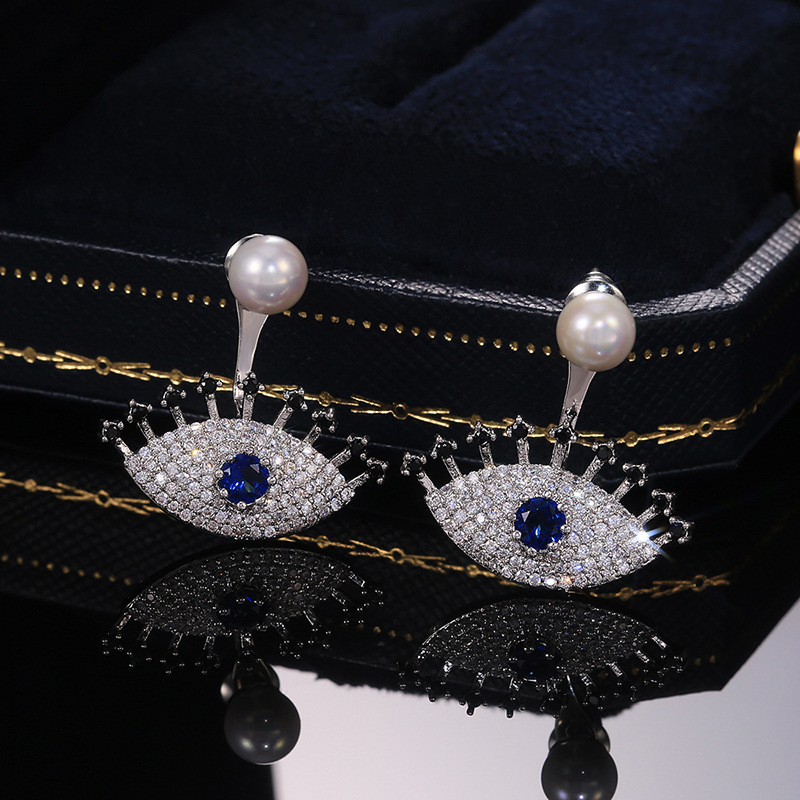 Live streaming new arrivals: European and American luxury exquisite angel eye earrings for women, zircon imitation pearl earrings