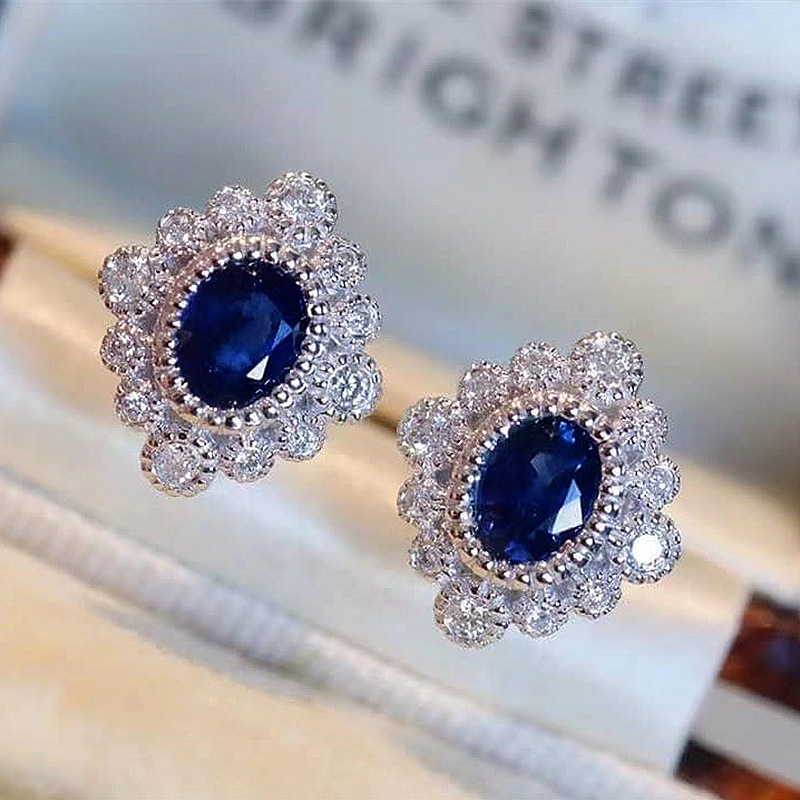 Live streaming style internet celebrity retro earrings new diamond sapphire zircon flower-shaped earrings for women