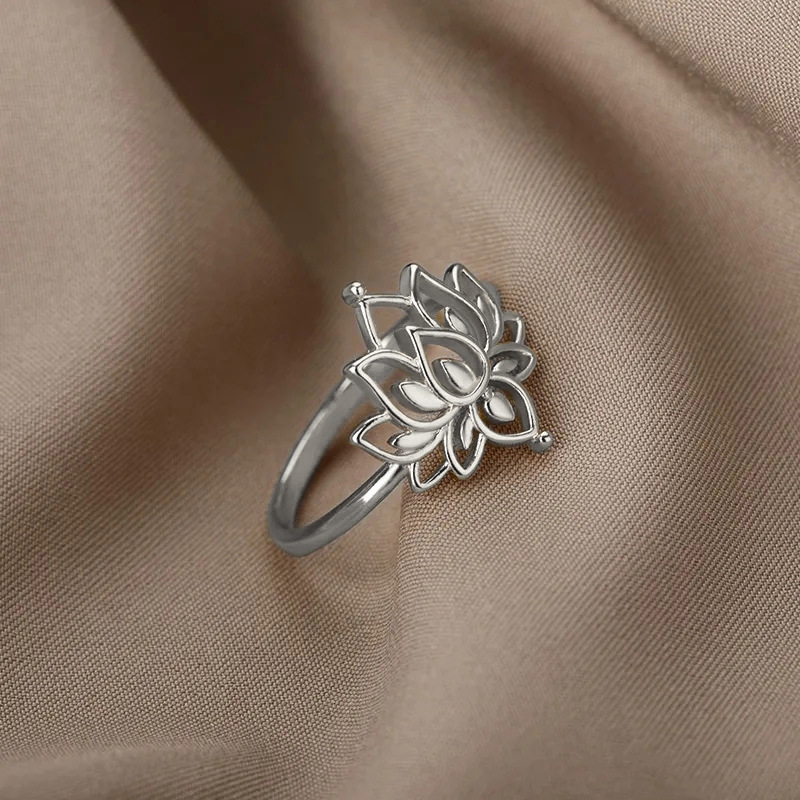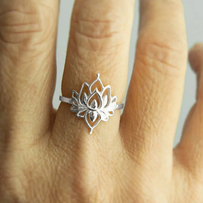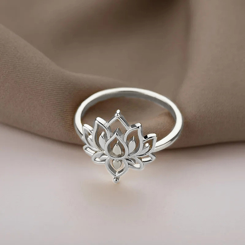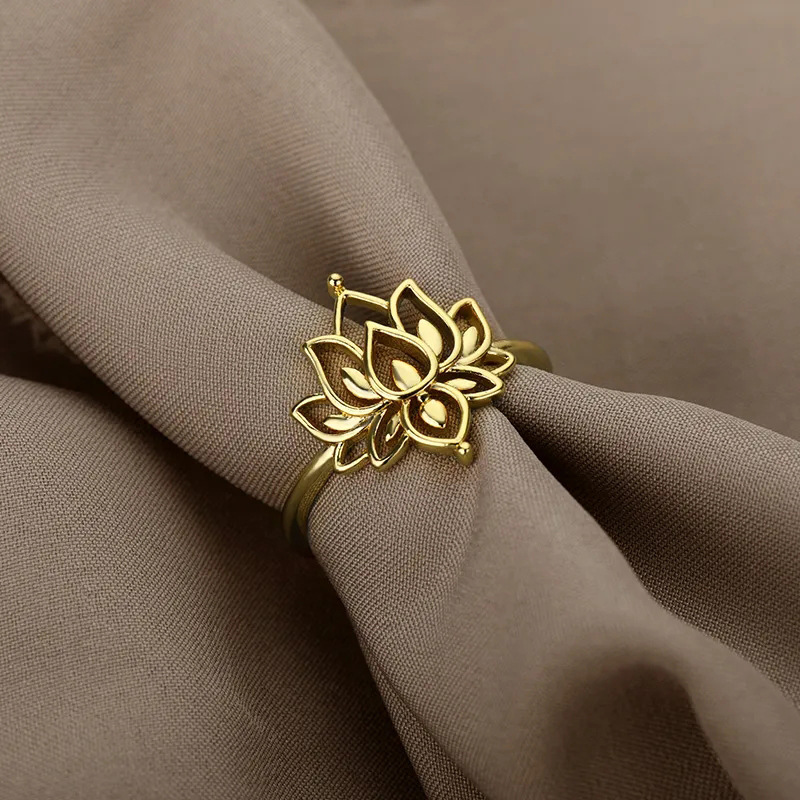 Lotus flower ring for women, fashionable ancient style exquisite ring, popular style, pastoral fresh single ring
