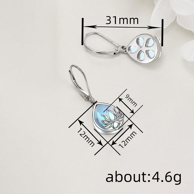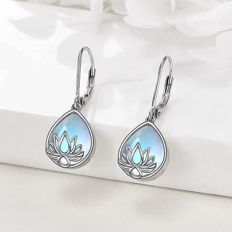 Lotus water drop imitation moonstone earrings fashionable and fresh pastoral earrings daily matching accessories for women