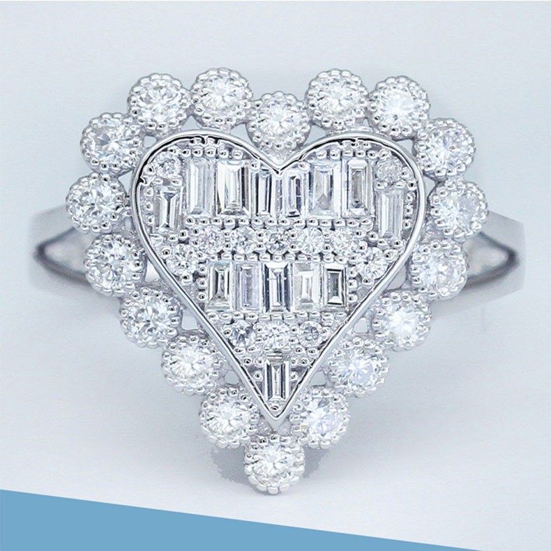 Love element series European and American all-match geometric hollow zircon ring full of diamond design personality jewelry