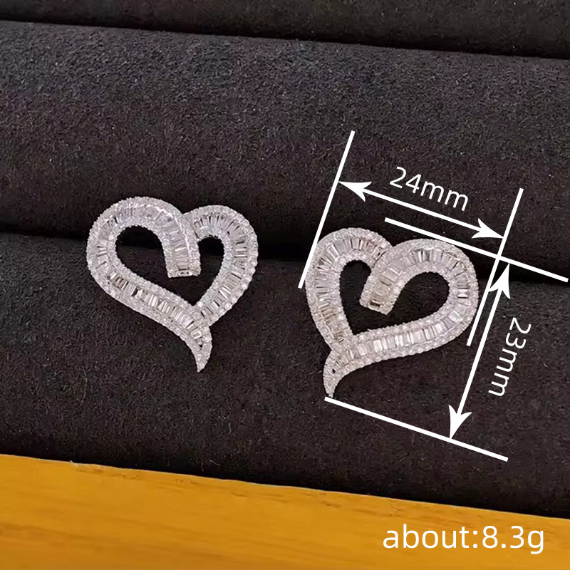 Love heart-shaped light luxury style earrings for women princess elegant lady jewelry factory direct sales hollow super hot style