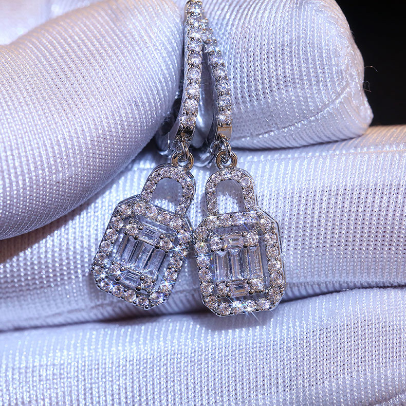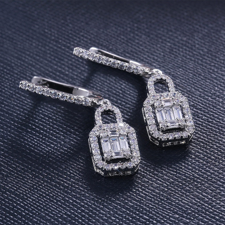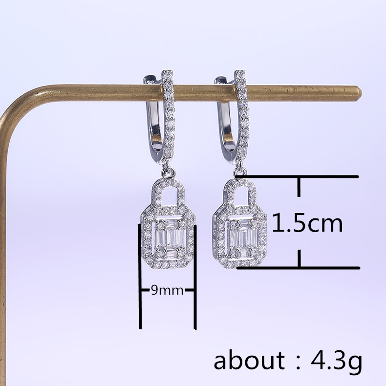 Love lock T square zircon exquisite ladies earrings group inlaid zircon love lock simple earring jewelry
