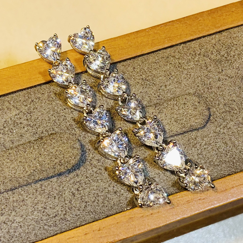Love long chain shiny earrings for women inlaid with zircon fashionable girl earrings popular ultra-thin gift