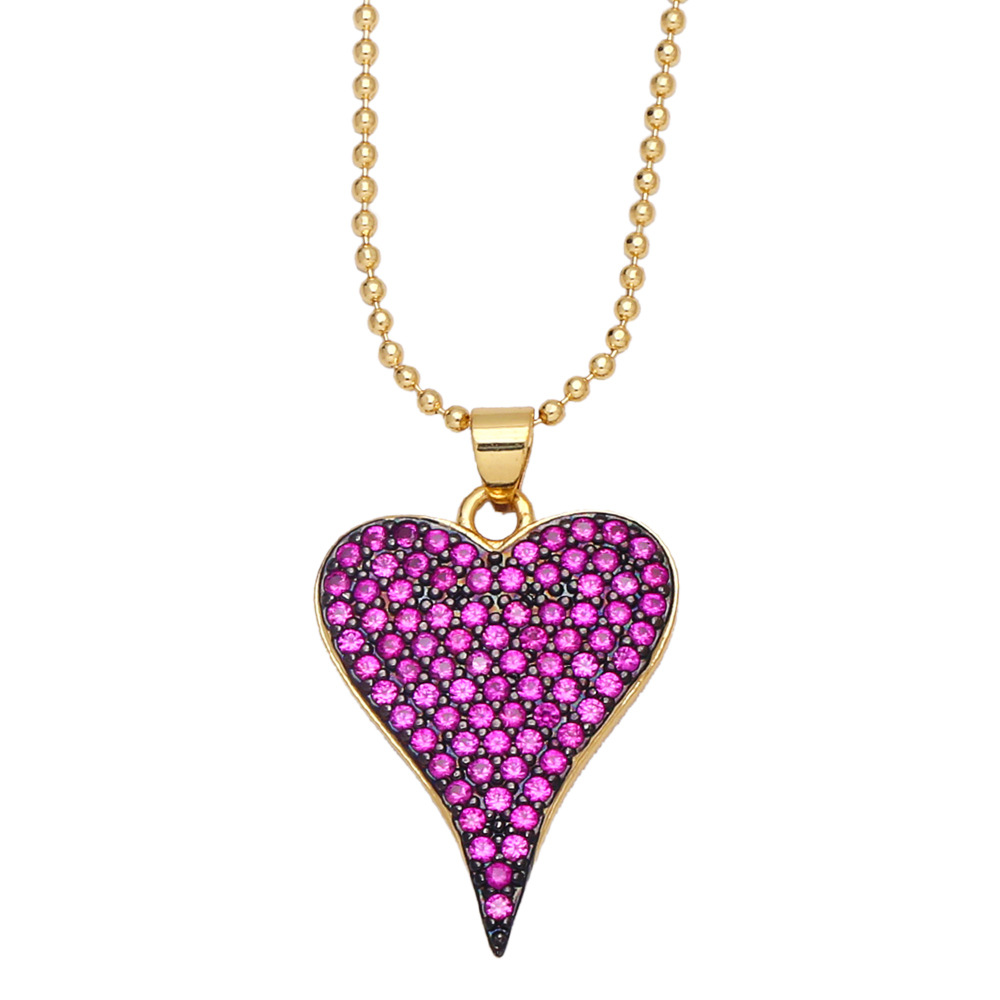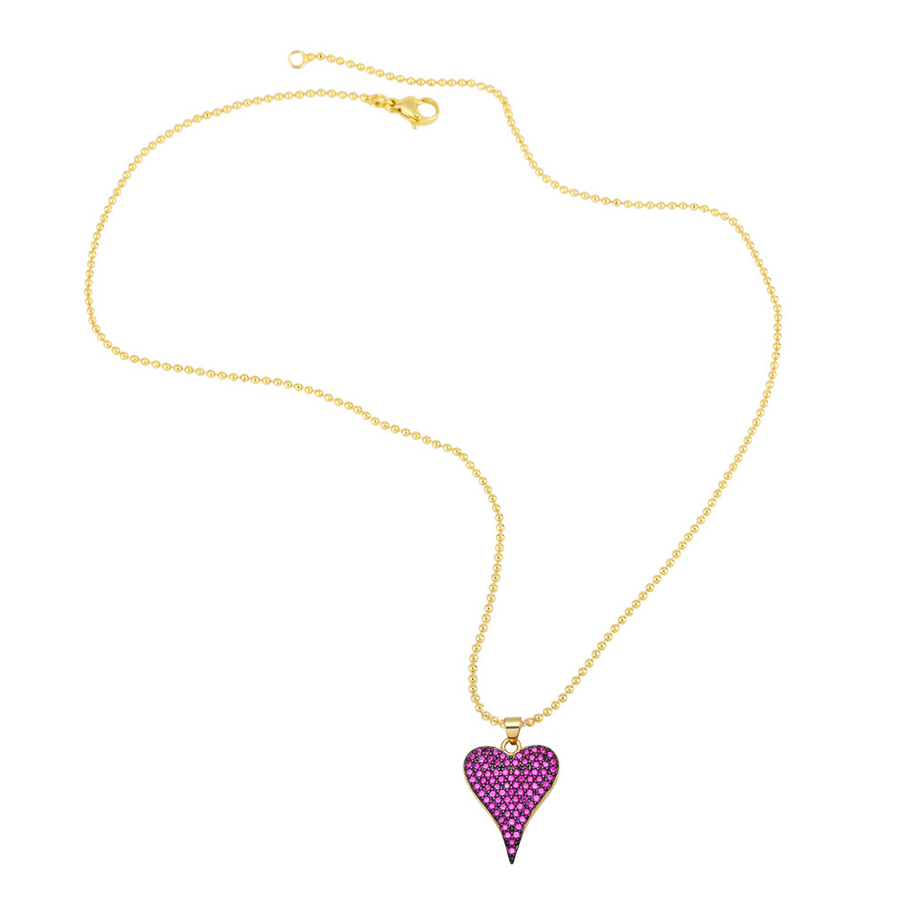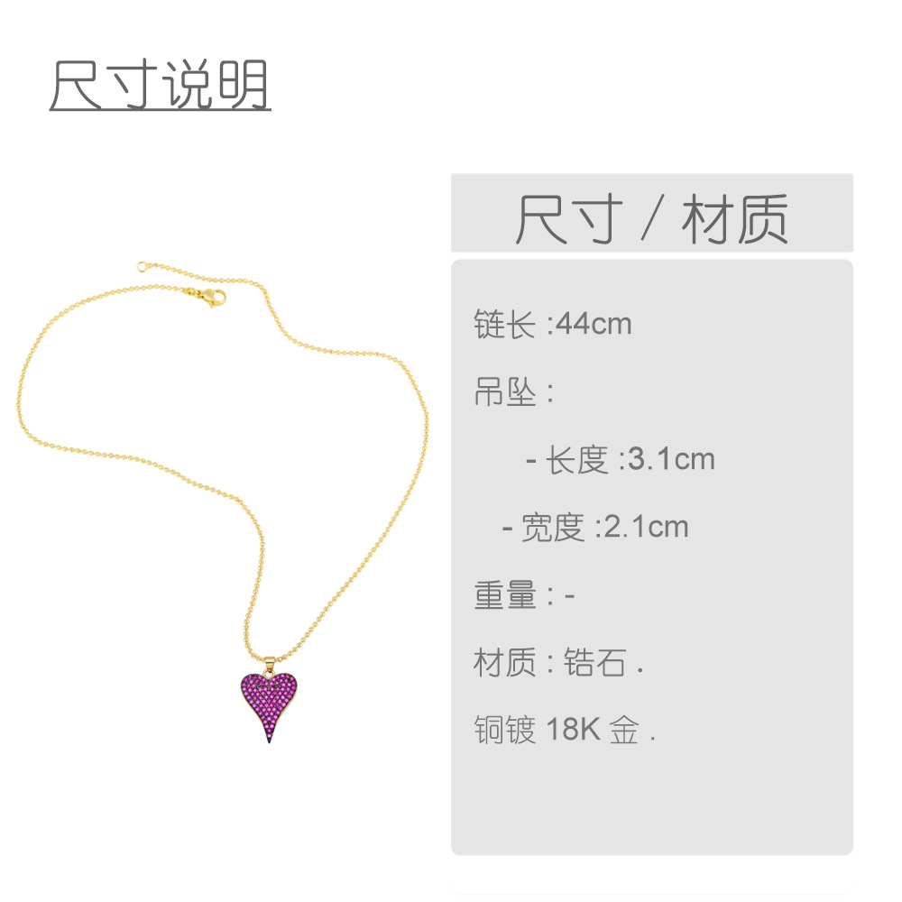Love necklace female European and American fashion color zircon peach heart pendant personality temperament heart-shaped clavicle chain nkb117