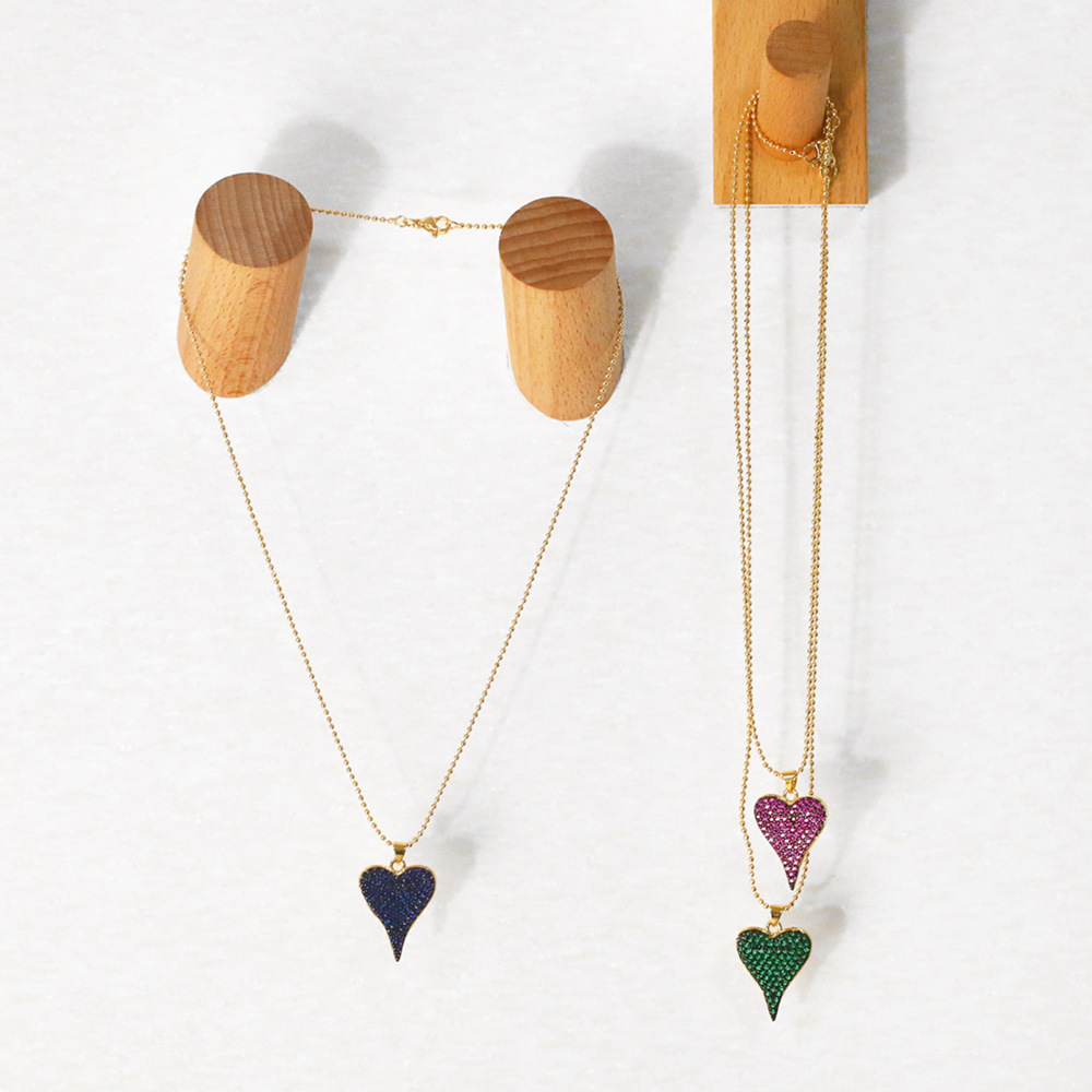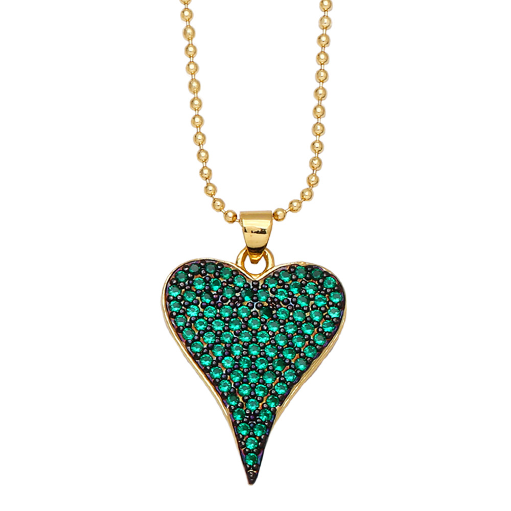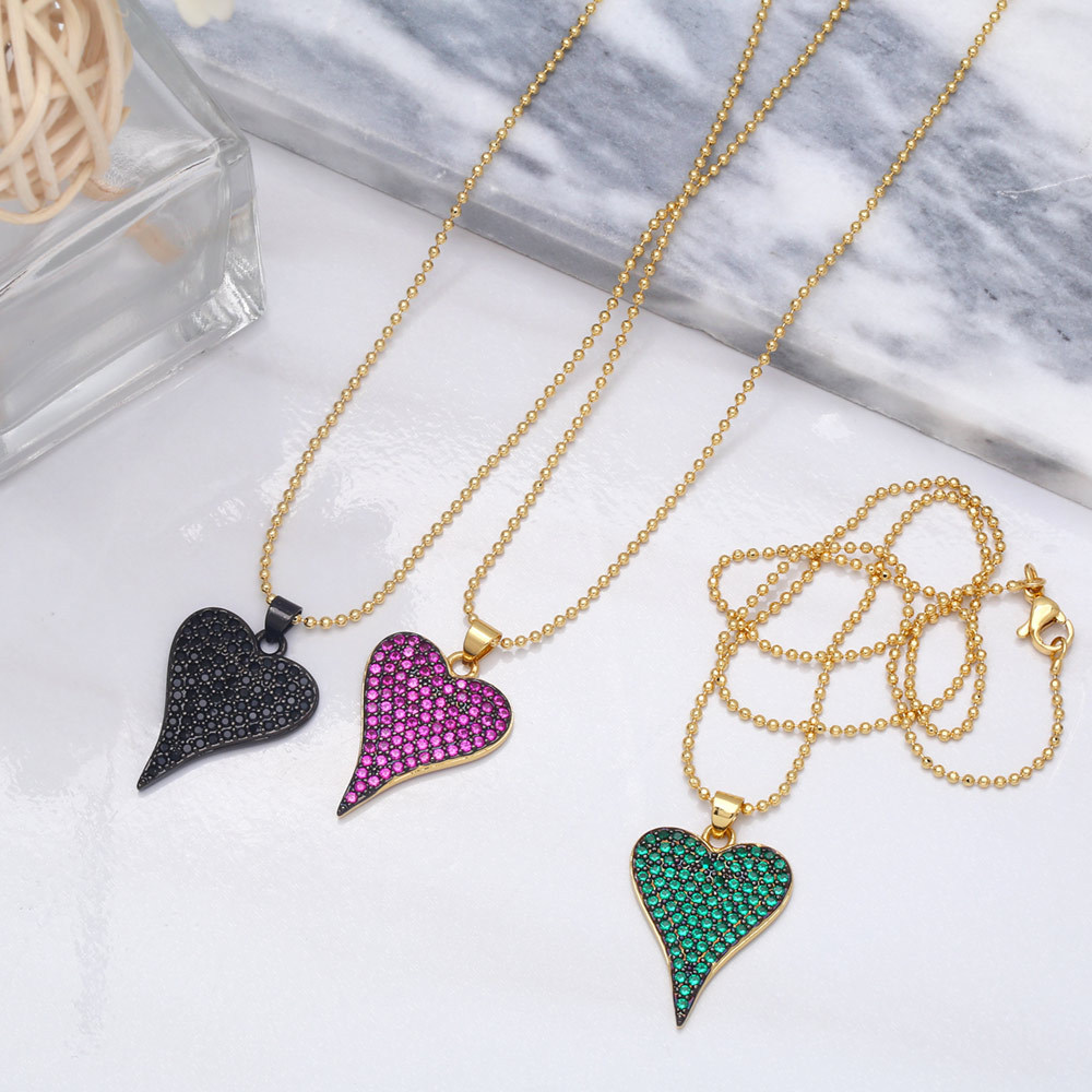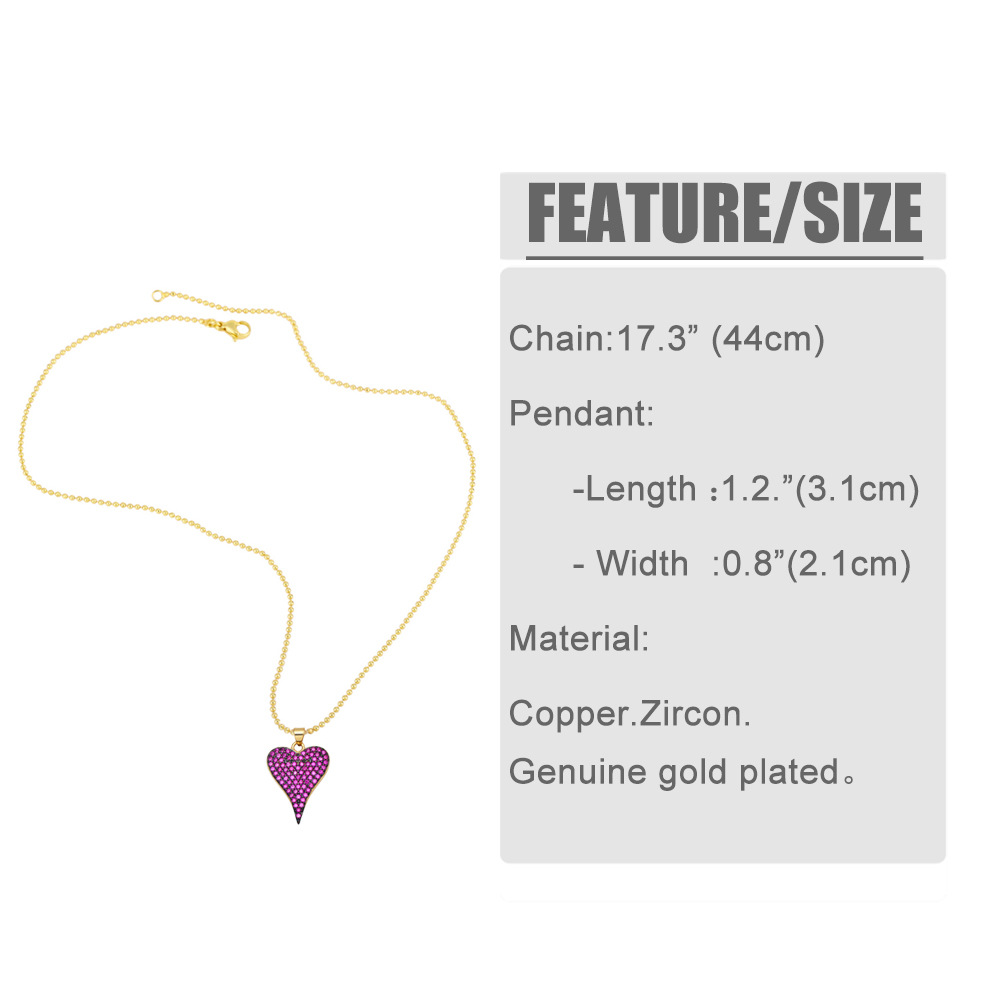 Love necklace female European and American fashion color zircon peach heart pendant personality temperament heart-shaped clavicle chain nkb117